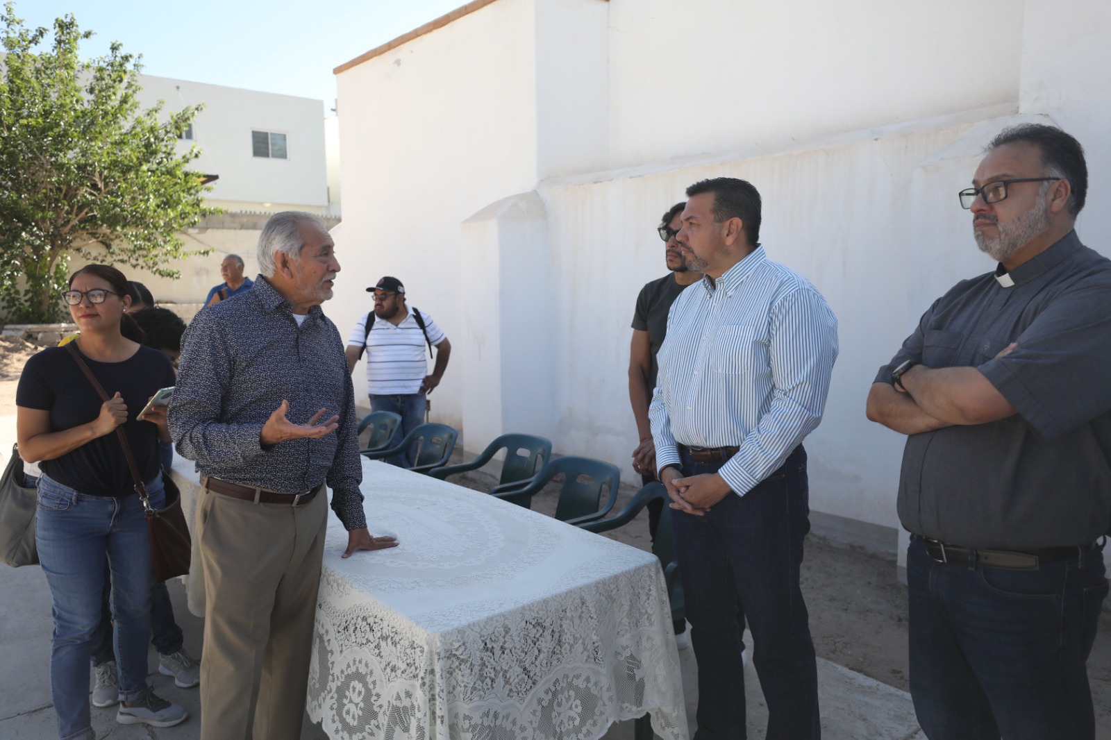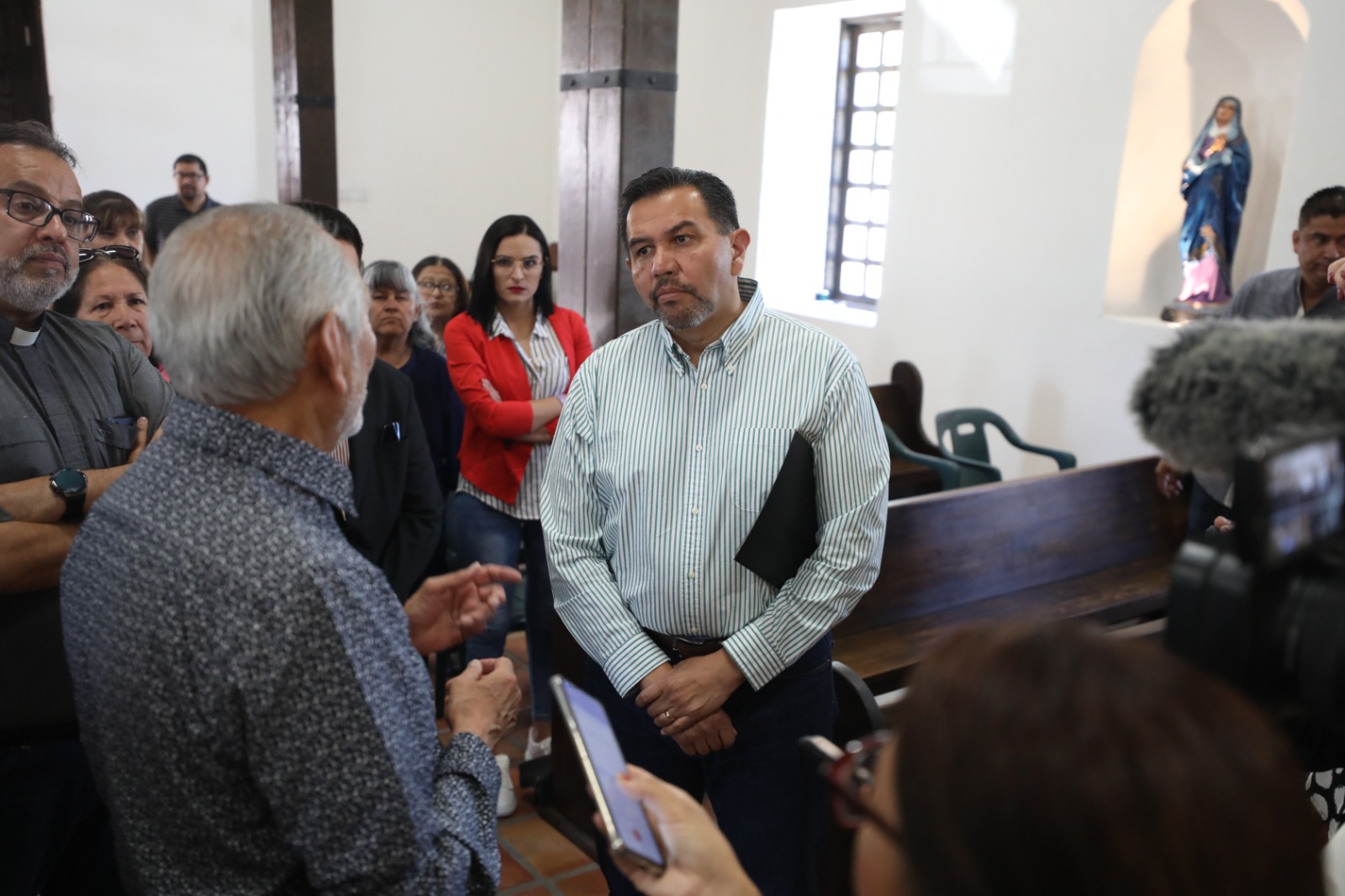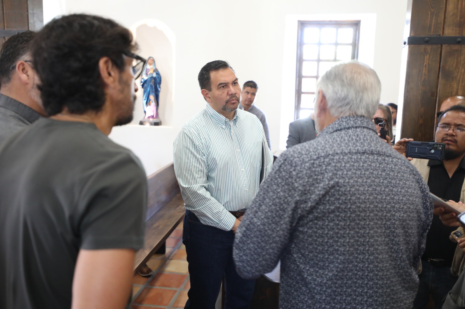 El alcalde estuvo acompañado del párroco Jorge González y del arquitecto José Ignacio Frausto Ojeda, con quienes hizo un recorrido por la capilla y le hablaron del proyecto que contempla también el panteón que se encuentra a espaldas del templo, mismo que debe ser restaurado para fungir como un museo abierto a todos los visitantes, pues la idea es que sea un complejo histórico.