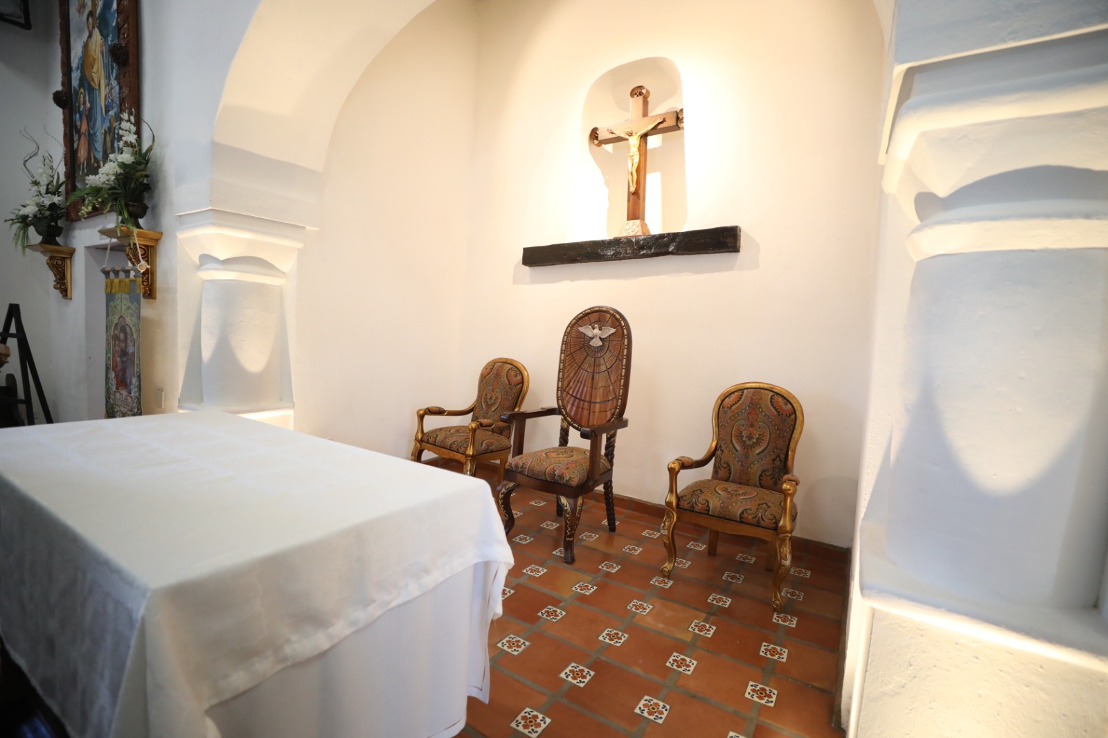 ??El piso se trajo desde Oaxaca, la talavera de Puebla, las imágenes se trajeron de Chiapas y Chihuahua; artesanos de Juárez nos hicieron el altar y otras cosas, aquí hay una representación de muchas partes del país y del exterior?, explicó el presbítero.