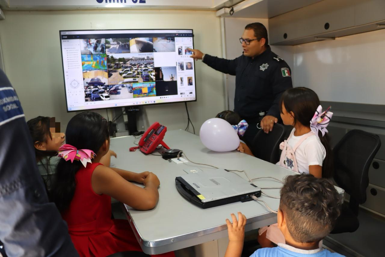 Aprendieron también a través de una caricatura, qué es una emergencia y qué no está clasificado como una emergencia, pudieron usar los radios por un momento, monitorear las cámaras de seguridad de la ciudad y conocieron por dentro un Centro de Mando móvil, además pudieron ver como vuelan los drones de la SSPM para cuidar a la ciudadanía.