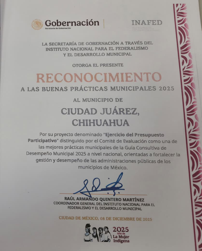 Ciudad Juárez obtuvo este segundo lugar en Buenas Prácticas Municipales 2025, solo por debajo del Municipio de Toluca en el Estado de México, quien por décimas se llevó el triunfo.