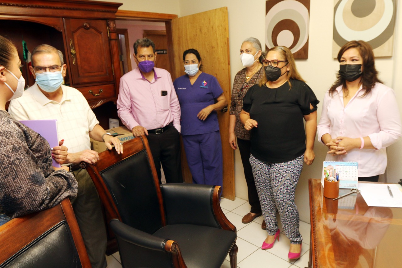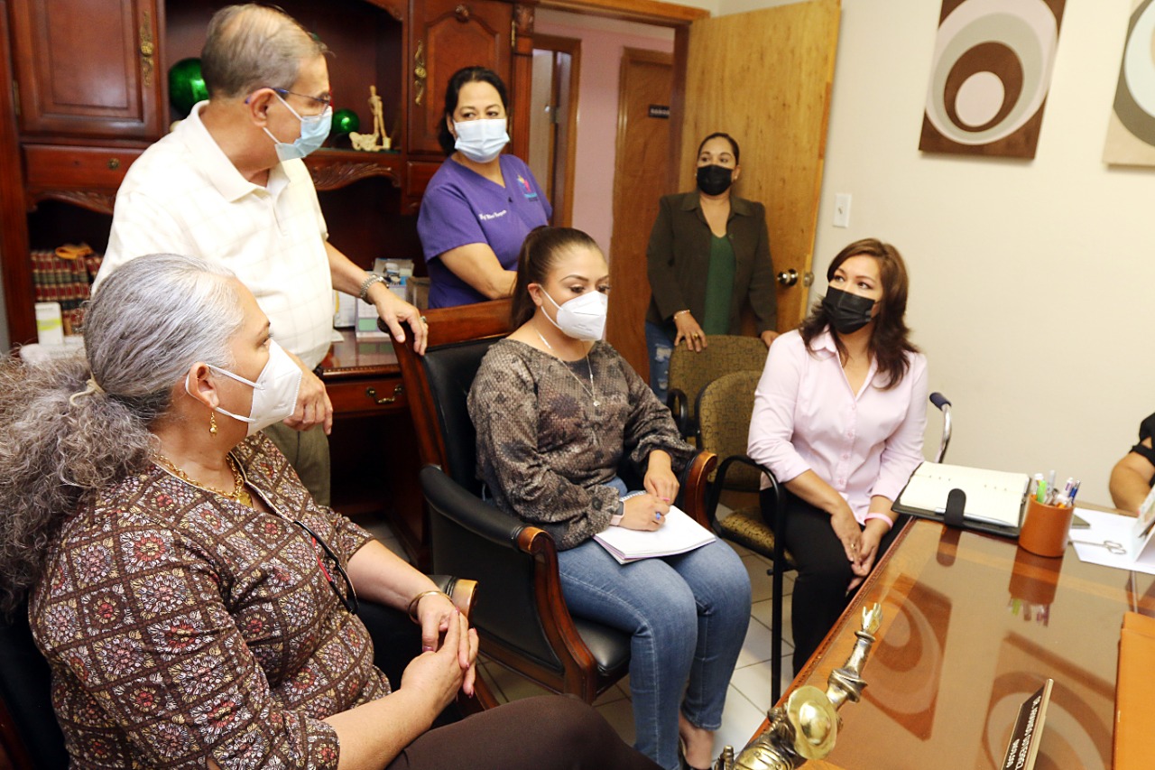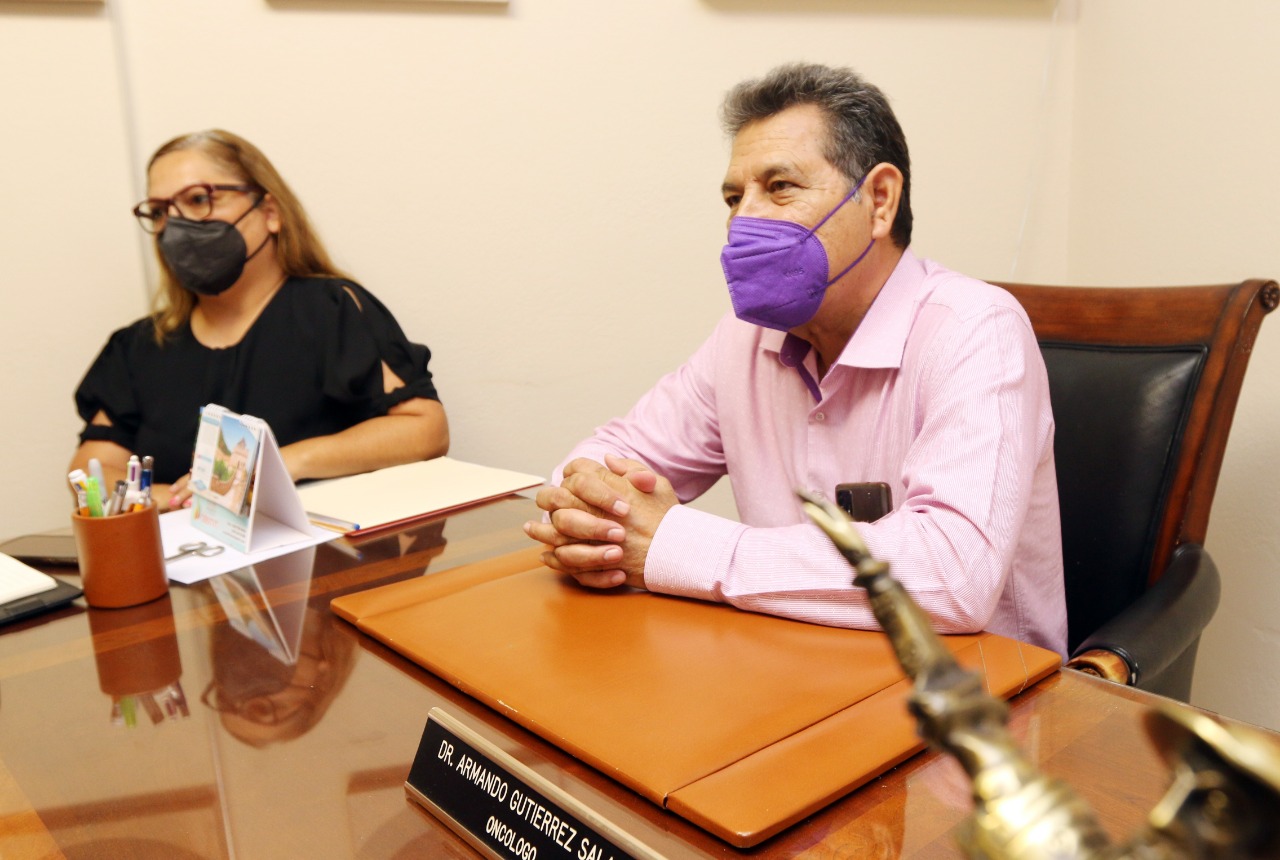 Paola Estrada Soto, directora de Desarrollo e Infraestructura, se acompañó del doctor Rafael Ramos Castillo, coordinador médico de Desarrollo Social, para reunirse con el oncólogo Armando Gutiérrez Salas, miembro de la asociación civil, para generar coordinación y trabajo en conjunto.