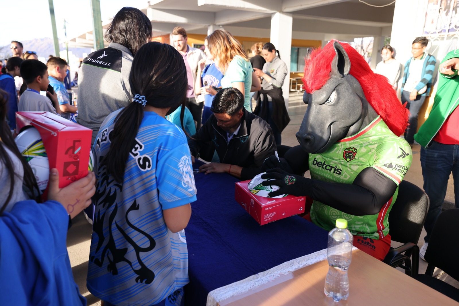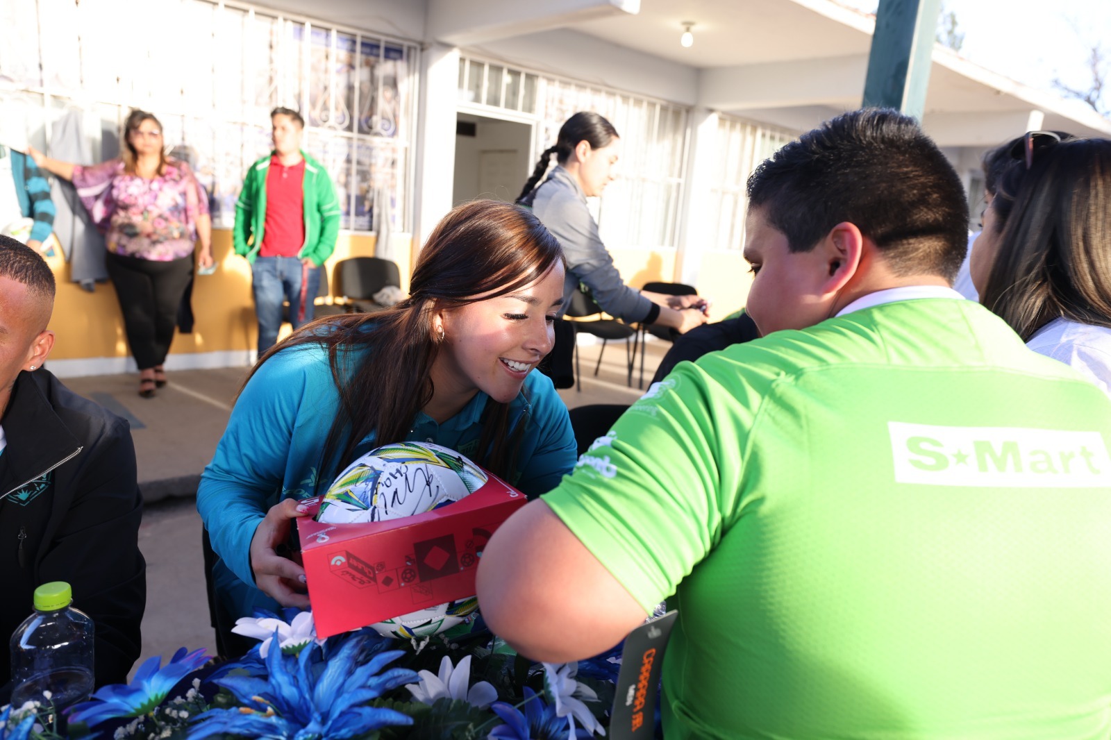 Por parte del DIF se entregaron balones de futbol que posteriormente fueron autografiados por las estrellas del futbol. Representando a la descentralizada estuvieron el subdirector general Gilberto Gutiérrez y el titular de Desarrollo Humano, Carlos Grado.
