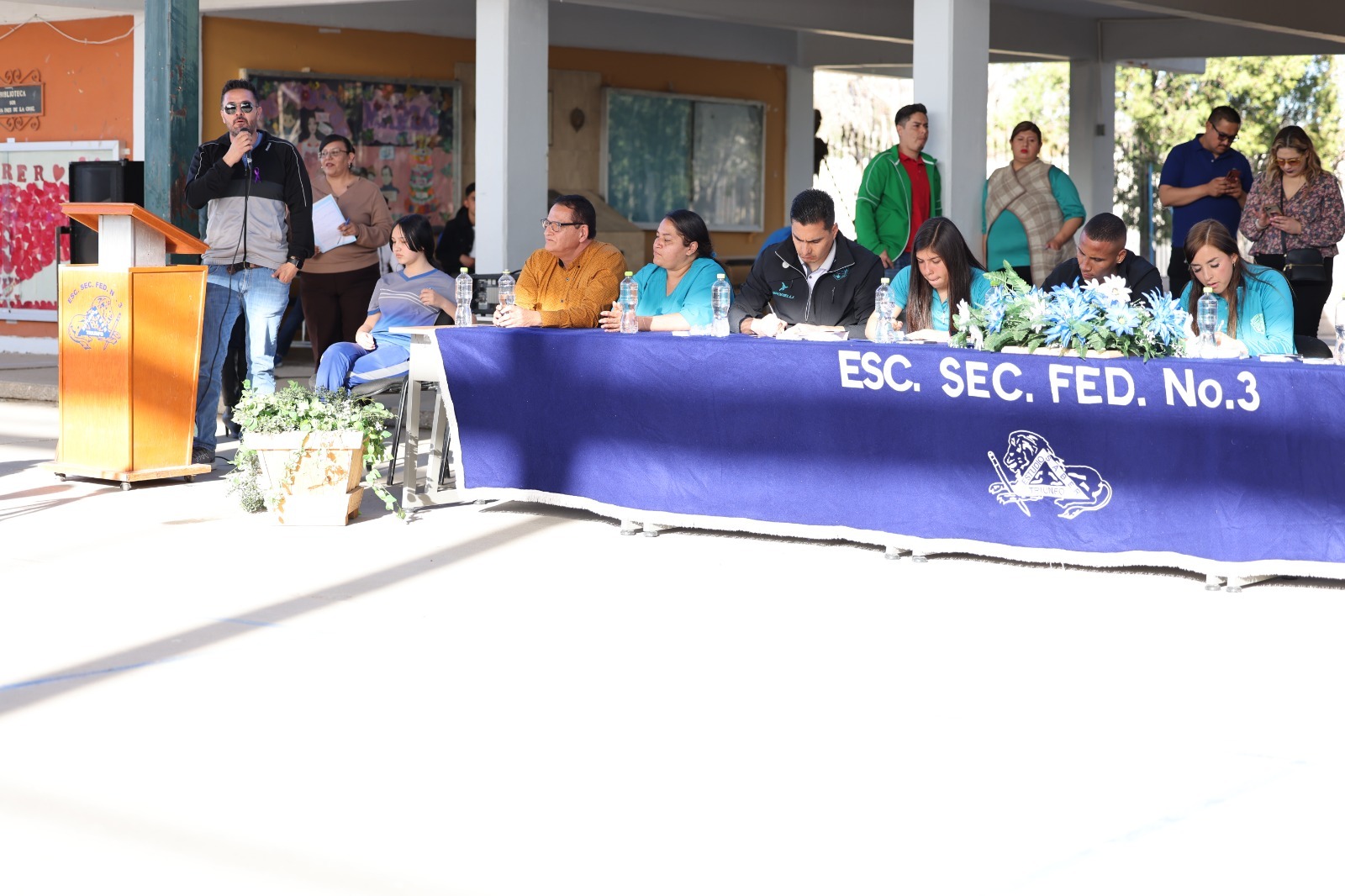 Con una gran algarabía, estudiantes de la Escuela Secundaria Federal número 3 recibieron la gira del Sistema para el Desarrollo Integral de la Familia, que preside Rubí Enríquez, y el Club de Futbol Bravos impulsando la educación y el deporte a través de dinámicas participativas.