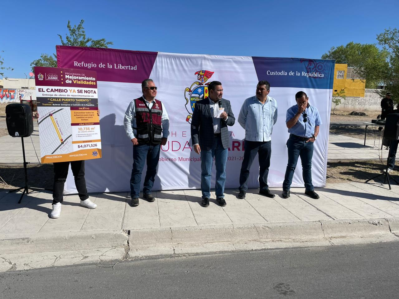 Dando seguimiento al Programa de Presupuesto Participativo, este día el Presidente Municipal, Cruz Pérez Cuéllar, entregó las obras de repavimentación de la calle Puerto Tarento a los vecinos de la colonia Parajes de Oriente.