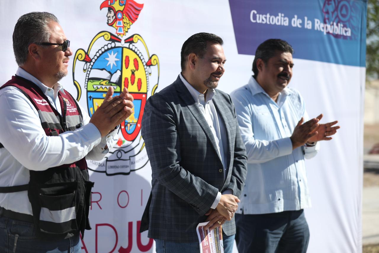 En la entrega de la obra acompañaron al alcalde el coordinador general de Seguridad Vial, César Tapia Martínez y Erick Ochoa, director de Urbanización de la Dirección General de Obras Públicas.