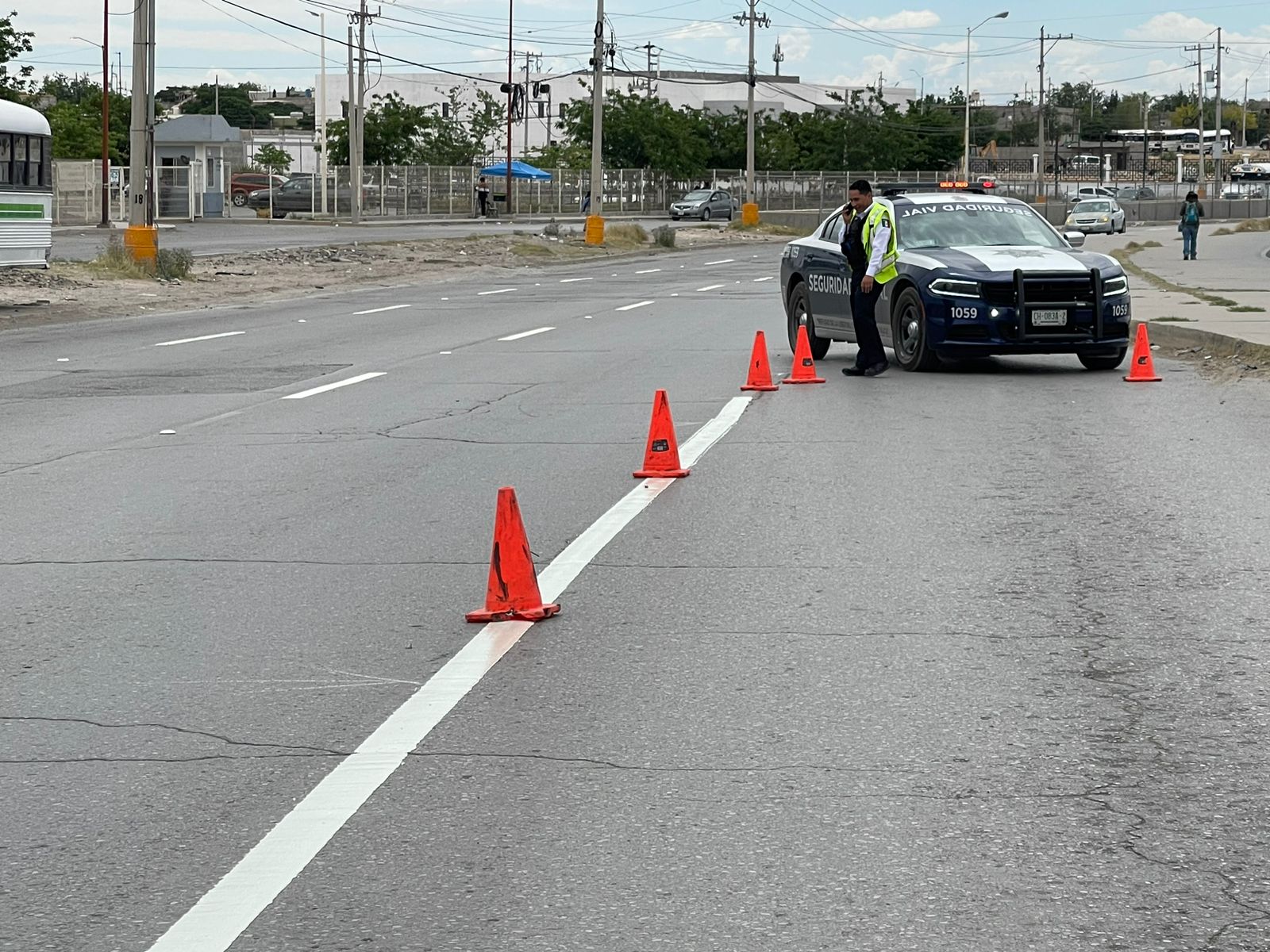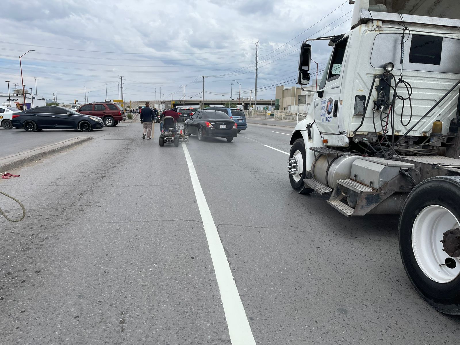 Por otro lado, una cuadrilla de trabajadores de la Coordinación General de Seguridad Vial se encargó este día de la aplicación de pintura termoplástica, además de la instalación de vialetas y estoperoles para delimitar los carriles de circulación vehicular en el bulevar Manuel Talamás Camandari.