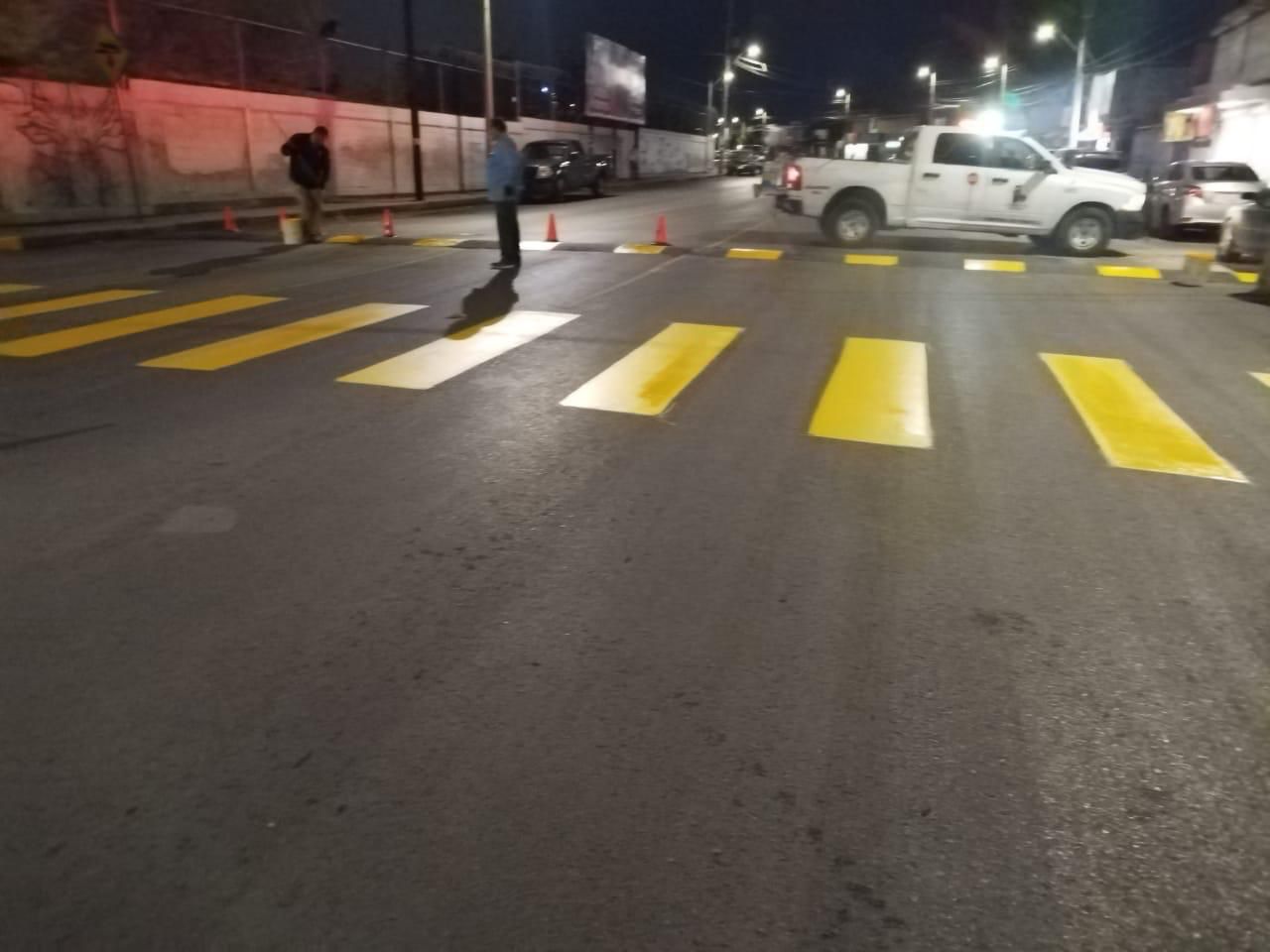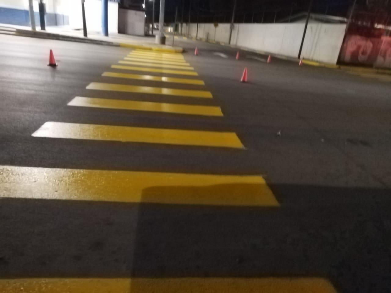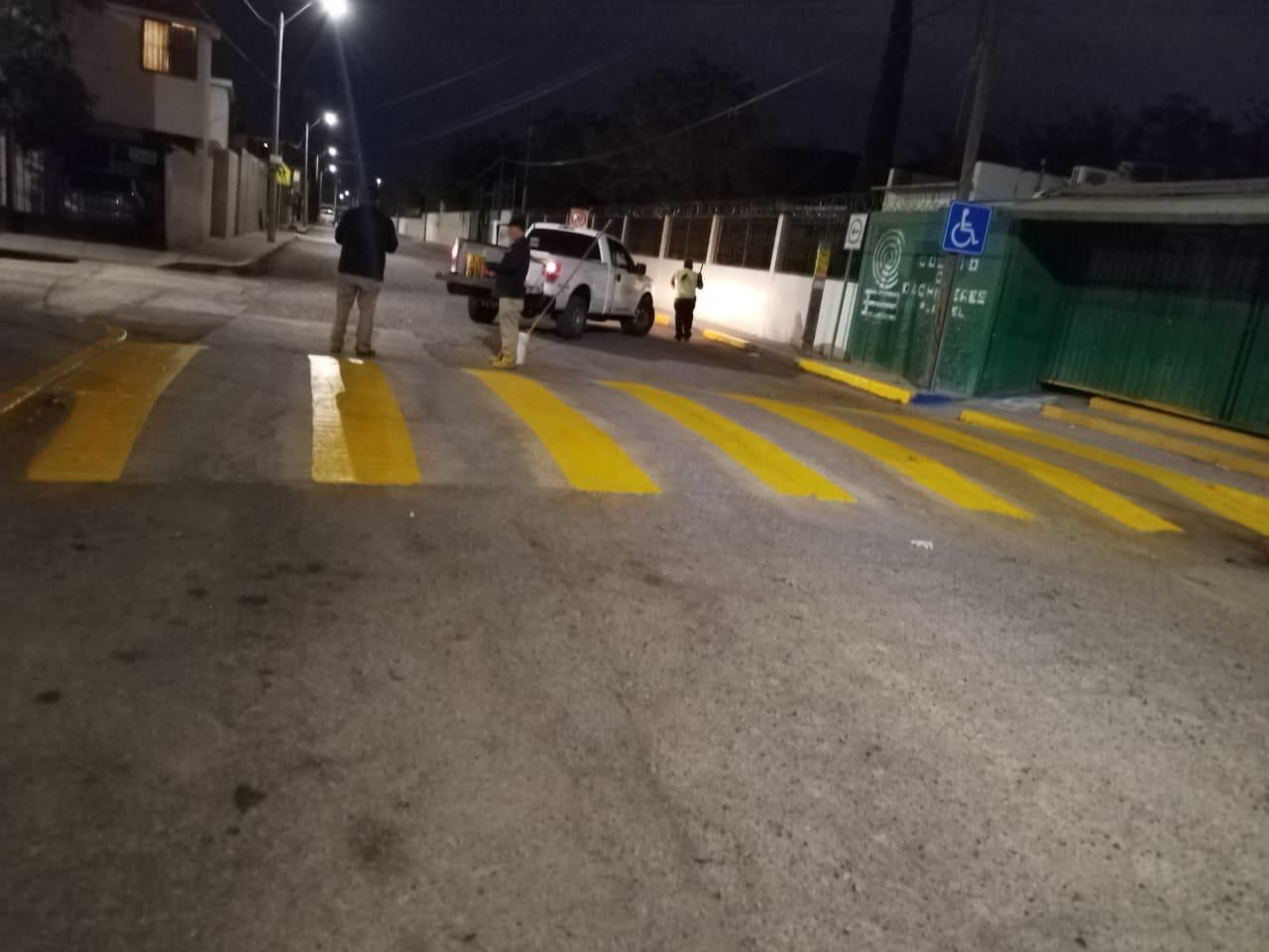 Los trabajos nocturnos que se llevaron a cabo para beneficio de los estudiantes y las familias del mencionado plantel, fueron la delimitación de pasos peatonales y señalamientos horizontales para guiar a los vehículos en la dirección correcta sobre la calle.