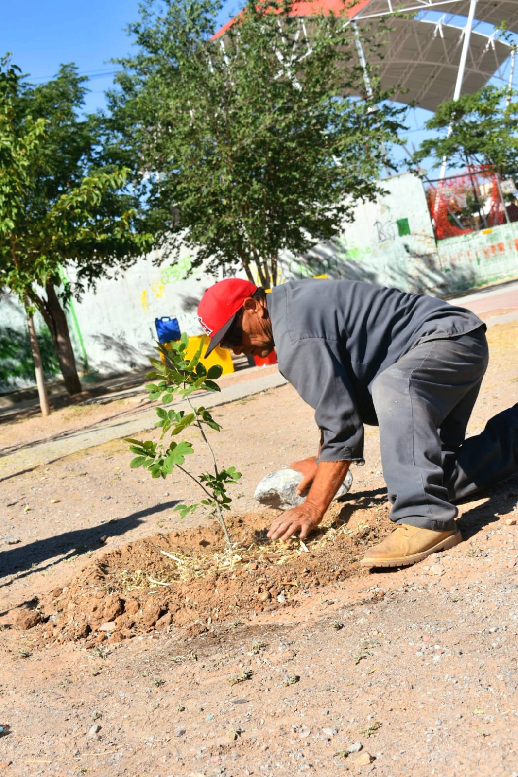 Daniel Iván Zamarrón Saldaña, titular de la dependencia, comentó que se realiza una rehabilitación integral del parque, en donde se le da mantenimiento y limpieza con el retiro de basura, corte de maleza, poda formativa del arbolado y forestación.