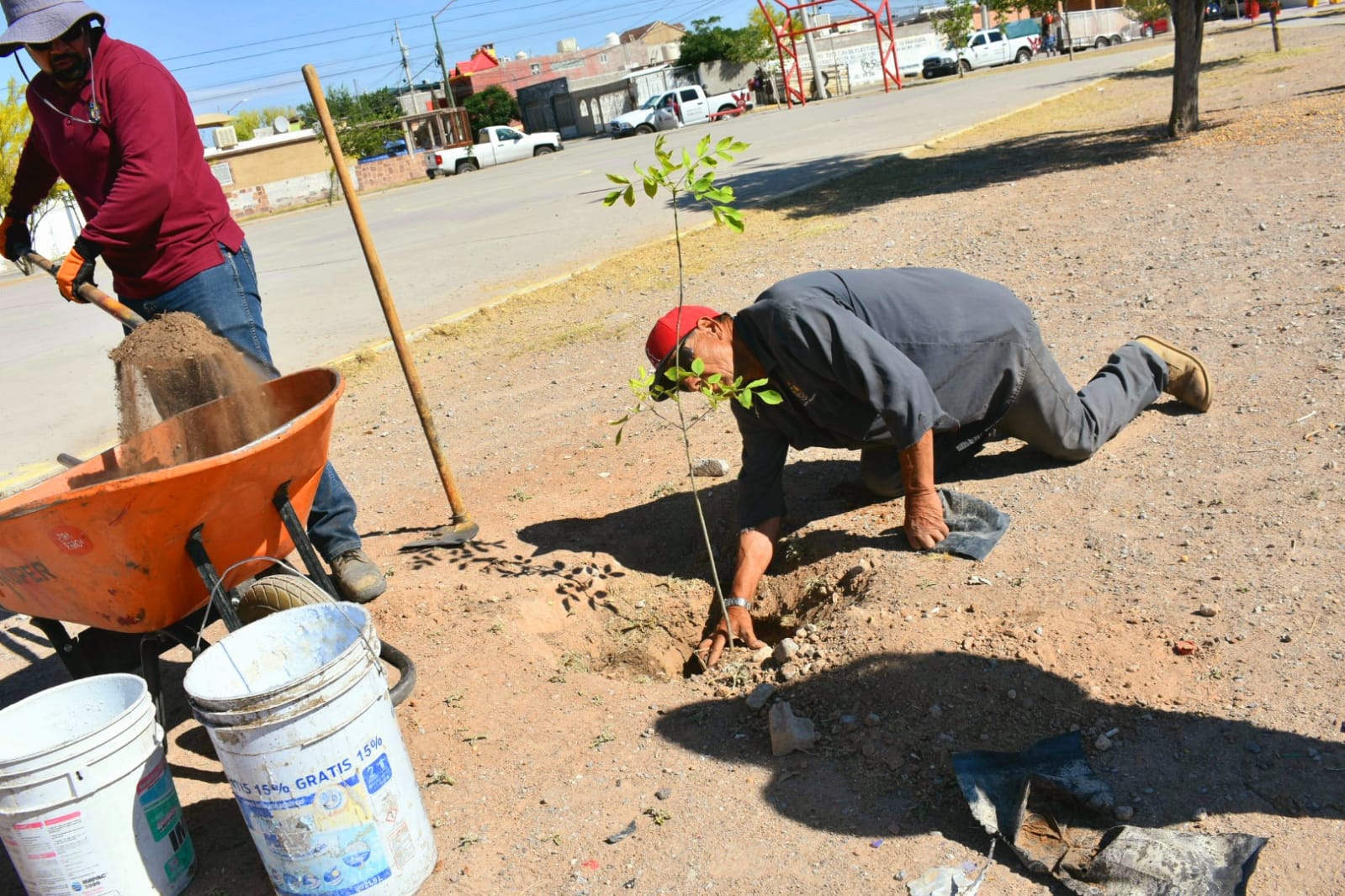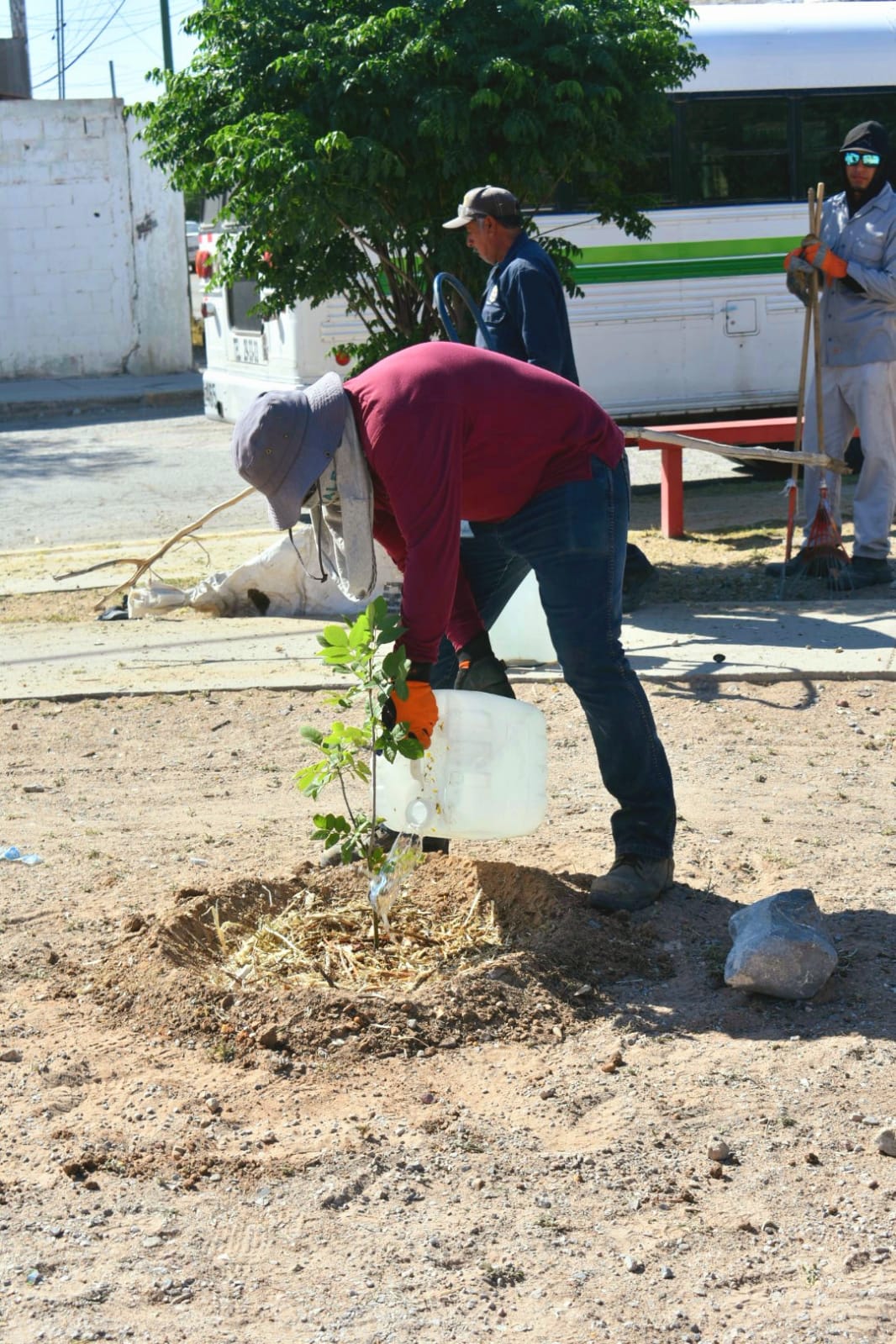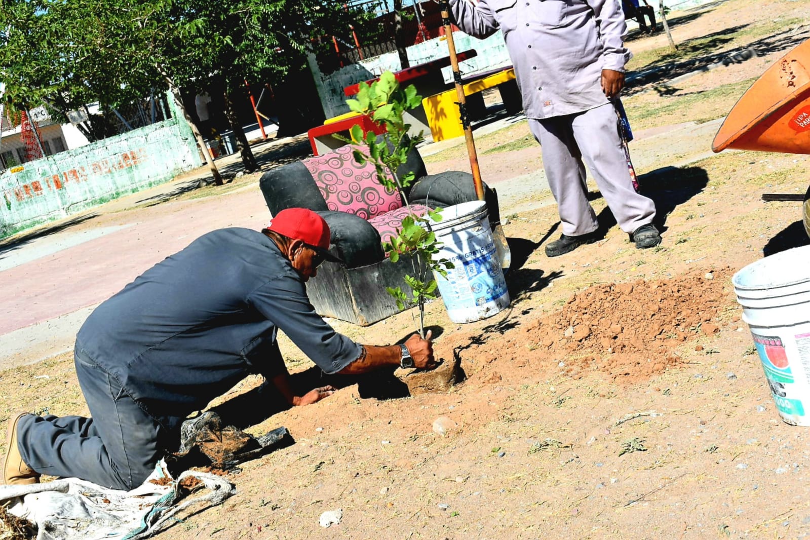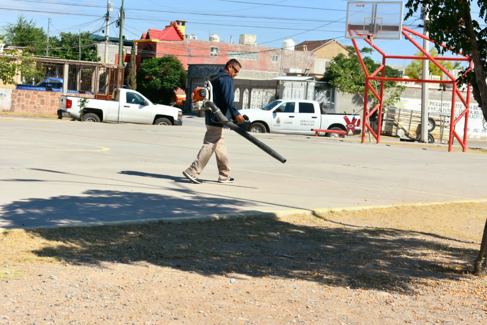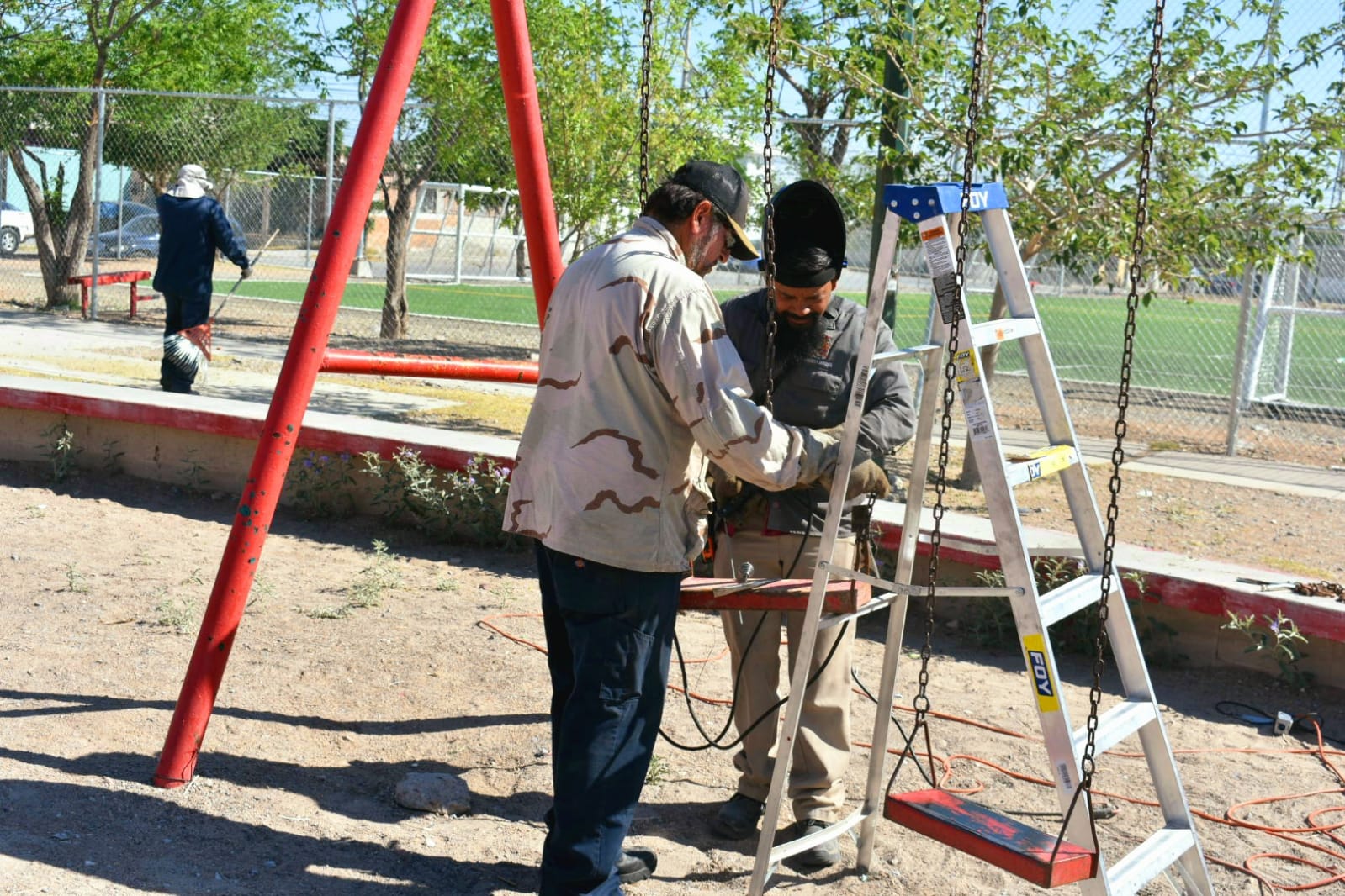 Como parte de las acciones para darle mantenimiento a las áreas verdes en distintos puntos de la ciudad, personal de la Dirección de Parques y Jardines realiza trabajos en el parque Pradera del Palmarejo de la colonia Pradera de la Sierra.