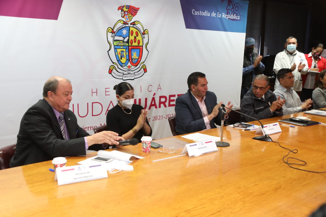 El Comité Municipal de Salud lo integran el Presidente Municipal, Cruz Pérez Cuéllar; la directora de Salud Municipal, Daphne Santana Fernández; el director de la Jurisdicción Sanitaria II, Rogelio Covarrubias; la coordinadora de la Comisión de Salud Fronteriza México Estados Unidos, Martha Sánchez; el regidor coordinador de la Comisión de Salud, Víctor Manuel Talamantes Vázquez y Verónica Carrión Falcón, epidemióloga de la Jurisdicción Sanitaria II de la Secretaría de Salud del Estado.