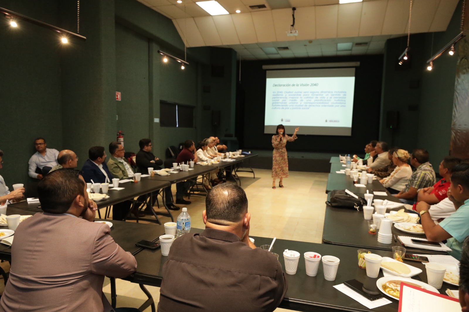 Uno de los objetivos fue darles a conocer la Visión Ciudad Juárez 2040 que coordina la Oficina de Resiliencia a cargo de Verónica González, la cual se desarrolla entre el Gobierno Municipal y ONU-Hábitat.