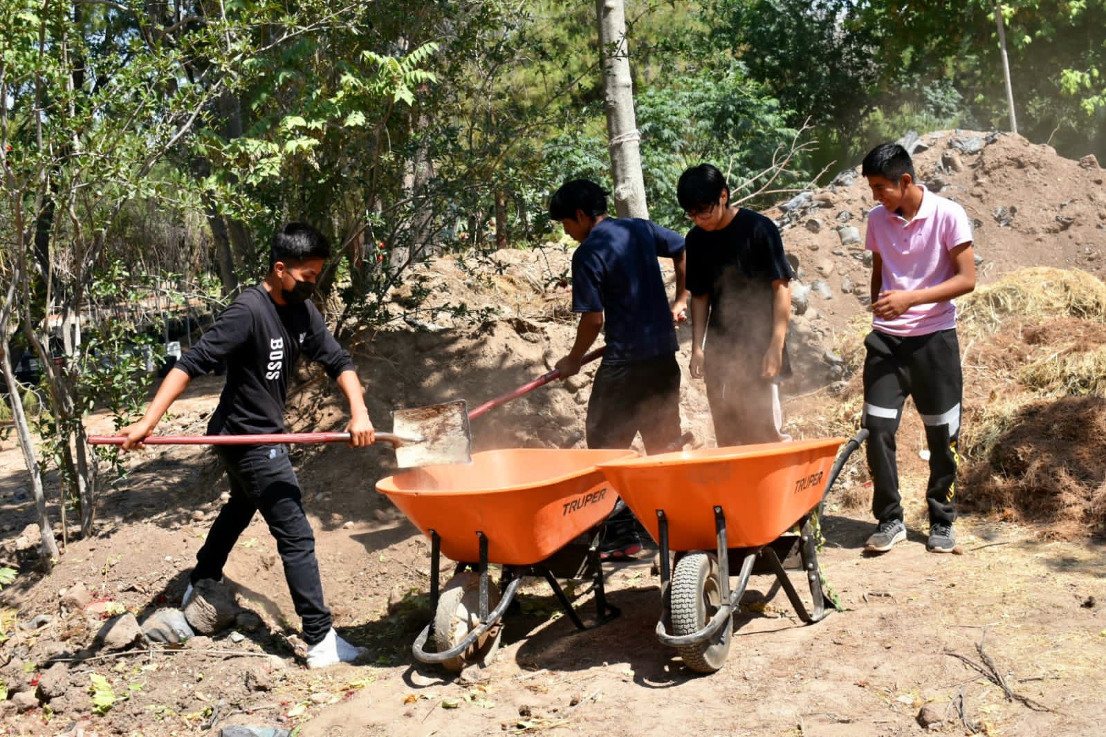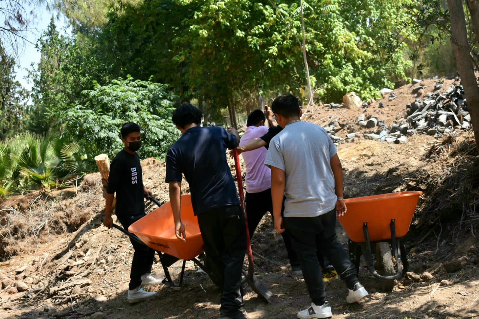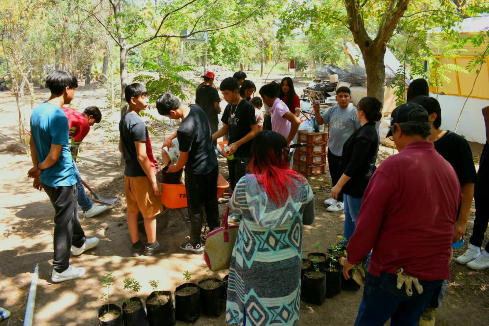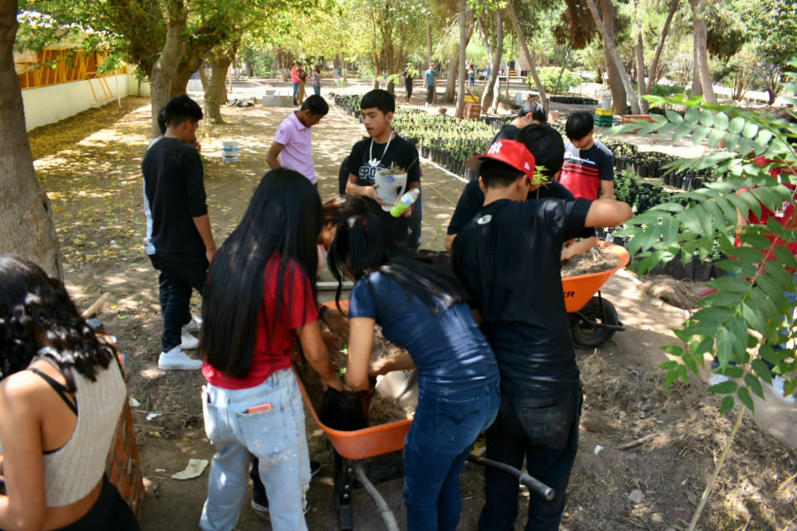 Un grupo de 25 jóvenes estudiantes del Programa de Educación a Menores con Educación Asistida del sector Anapra, acudieron este lunes a sumarse como voluntarios en los trabajos de mantenimiento del vivero de El Chamizal, apoyando al personal de la Dirección de Parques y Jardines.