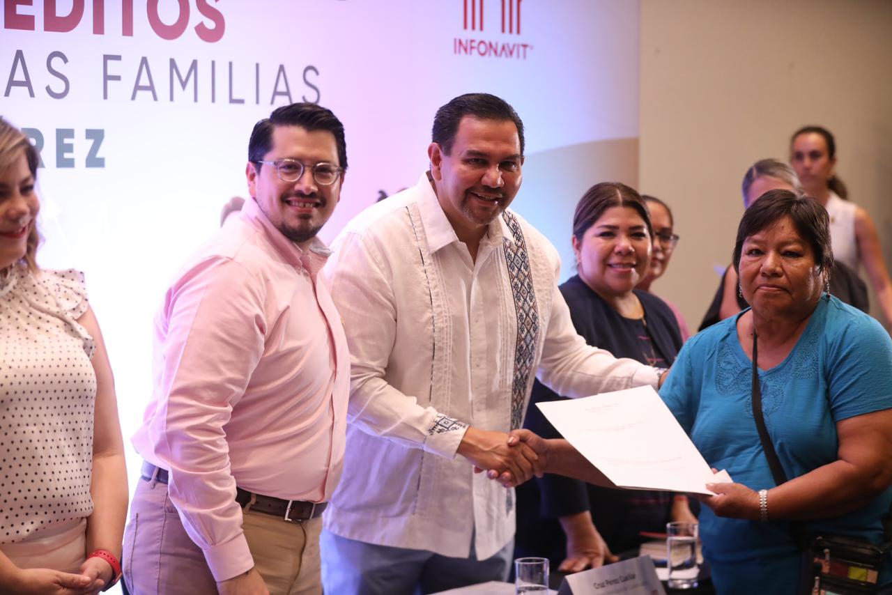La tarde de este lunes el alcalde acompañó al director general del Instituto del Fondo Nacional de Vivienda para los Trabajadores, Carlos Martínez Velázquez a la entrega de 150 documentos entre escrituras y créditos.