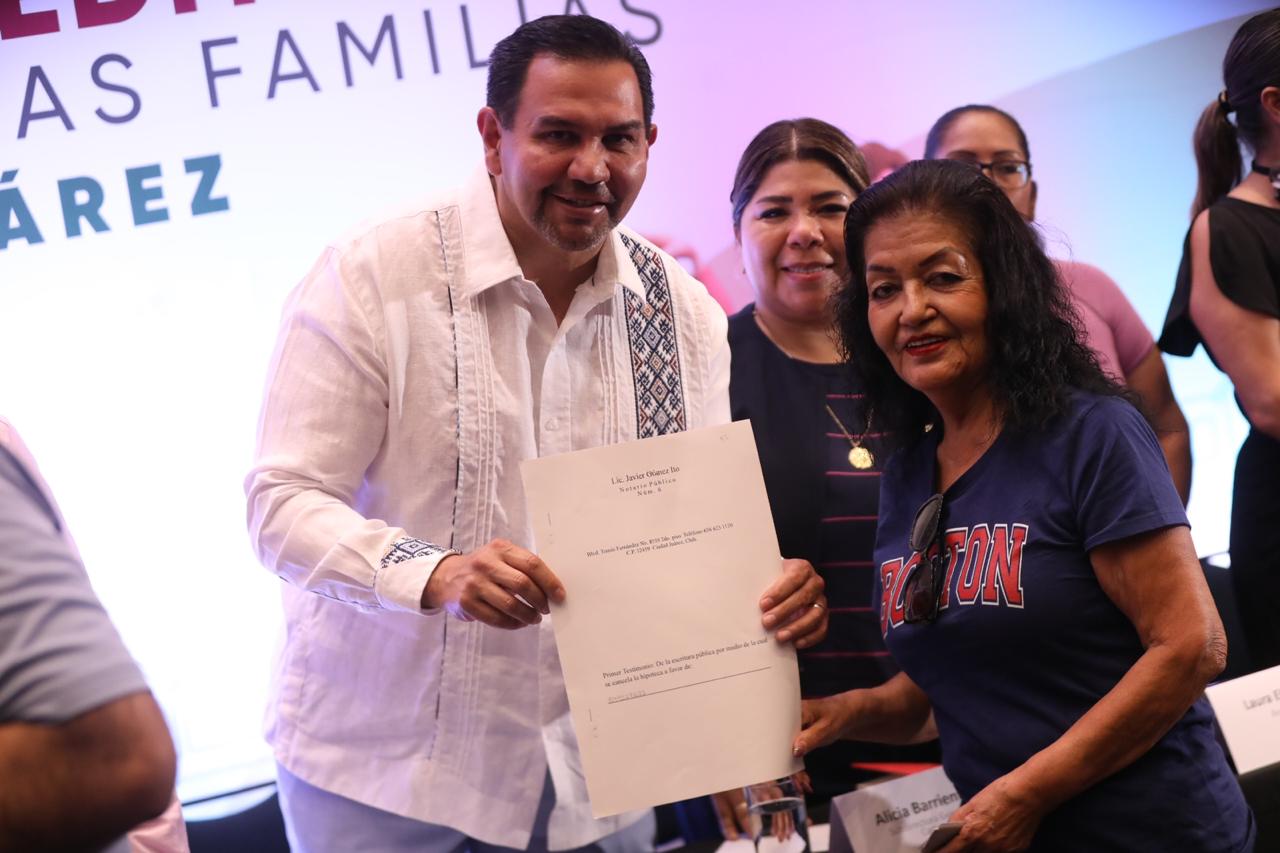 Lo más importante para las familias es contar con certeza jurídica de su patrimonio, saber que cuentan con una vivienda que puede heredar a sus hijos, de forma tranquila y segura, dijo el Presidente Municipal, Cruz Pérez Cuéllar durante la ceremonia de entrega de Créditos y Escrituras para las Familias en Ciudad Juárez por parte del Infonavit.
