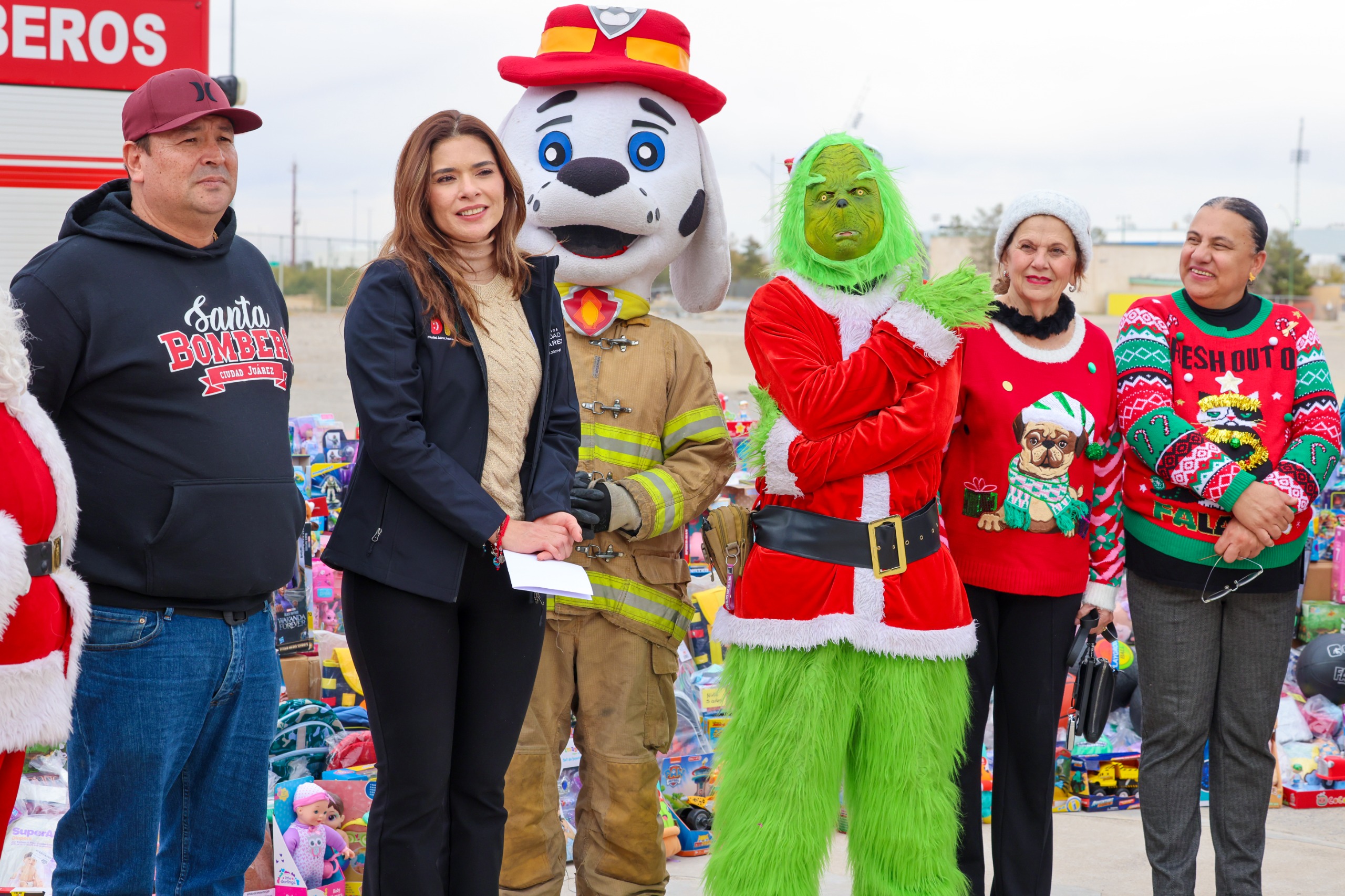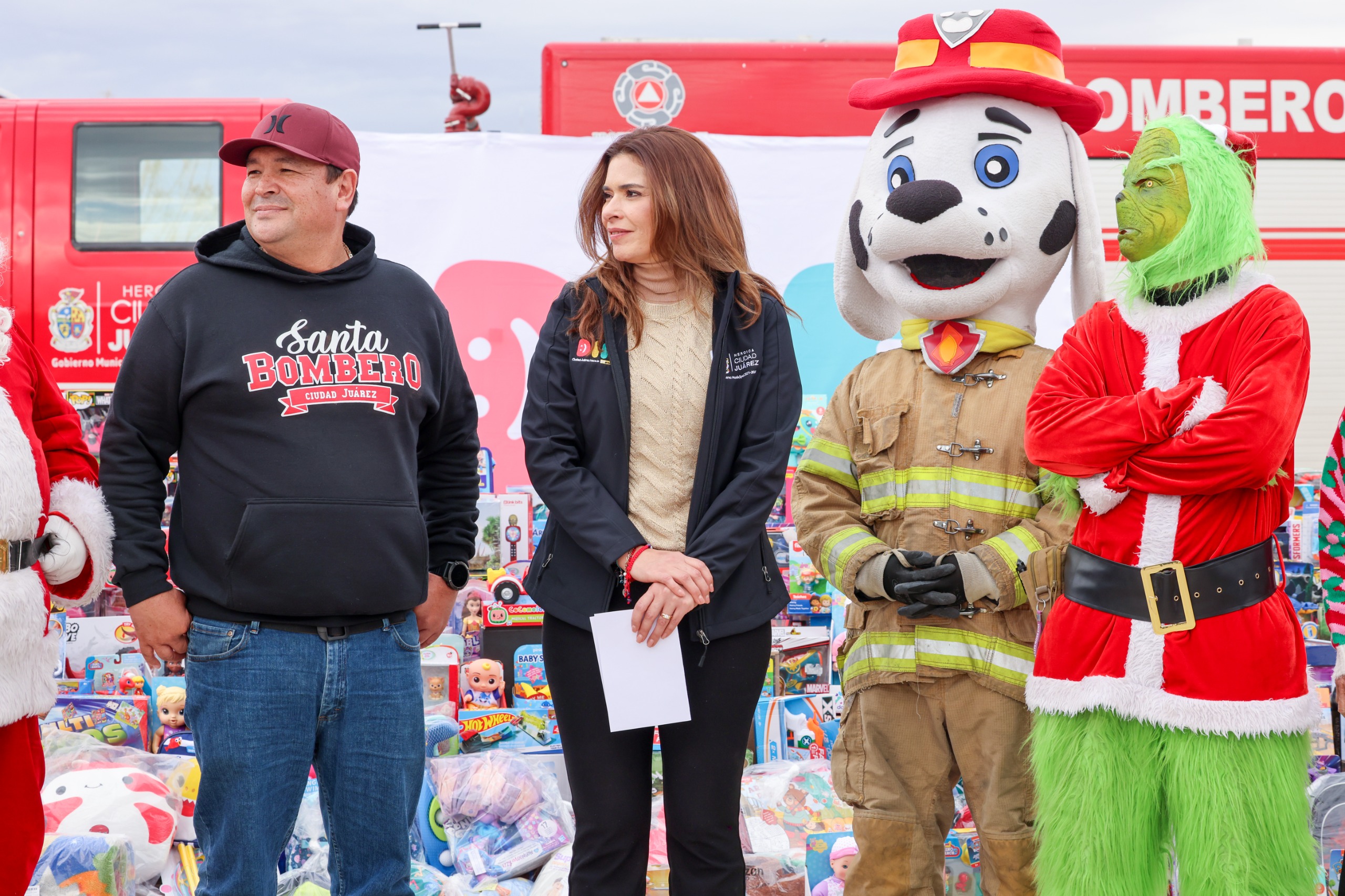 Recibe Rubà EnrÃquez donativo de juguetes para el Santa Bombero
