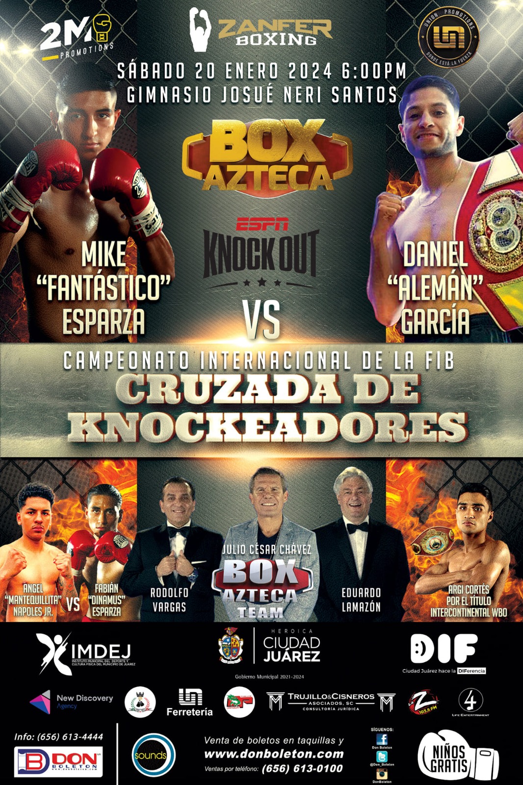 El ex peleador y gerente de Unión Promotions, Víctor ??Dragón? Pasillas, informó que la pelea estelar la protagonizará Mike ??Fantástico? Esparza contra Daniel ??Alemán? García por el campeonato Internacional de la FIB.