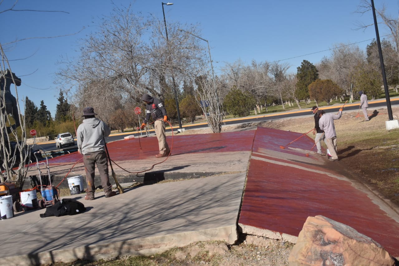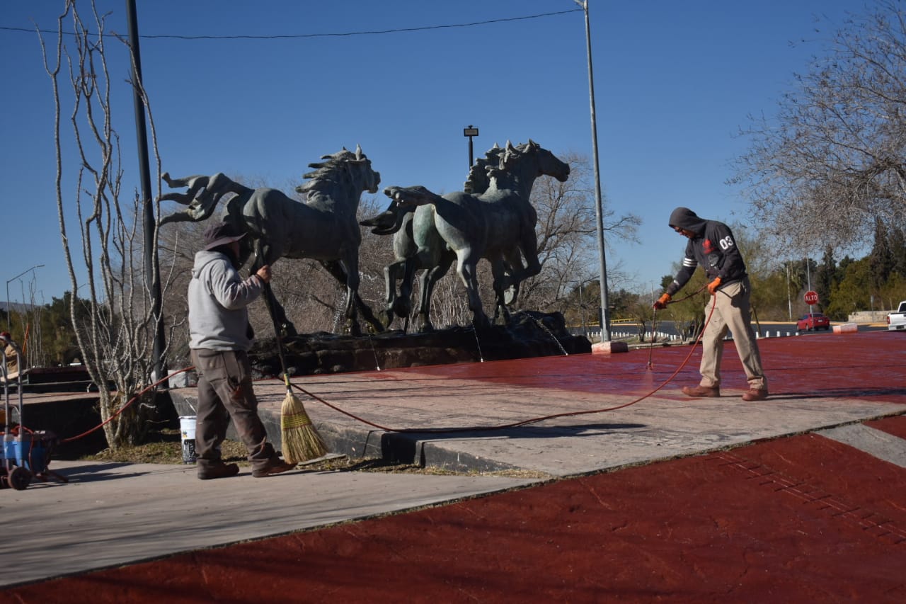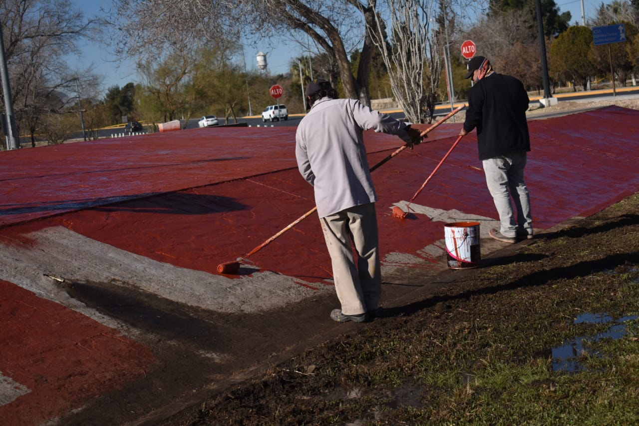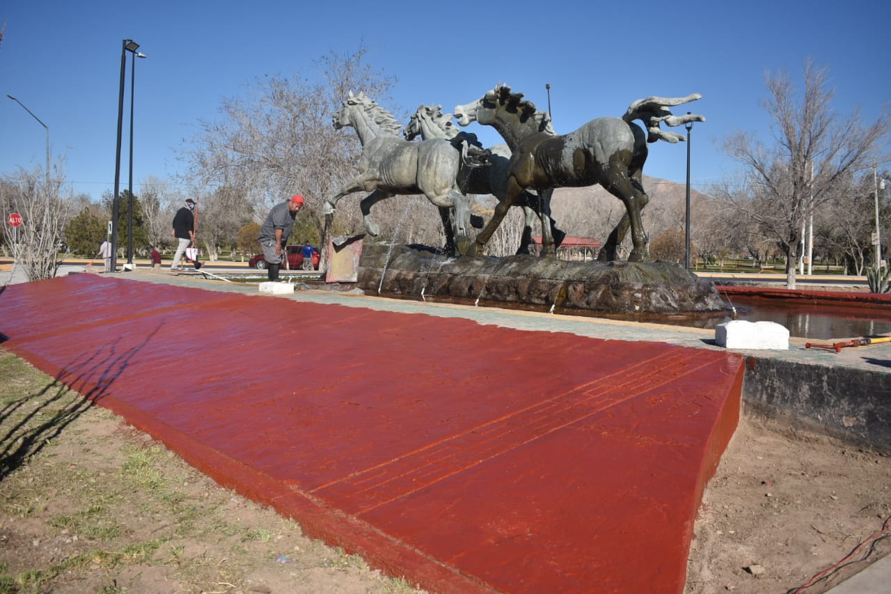 El funcionario detalló que se pintó de rojo óxido el suelo que enmarca el monumento, con el fin de avivar el color y embellecer aún más este espacio.