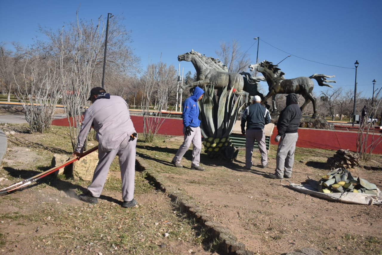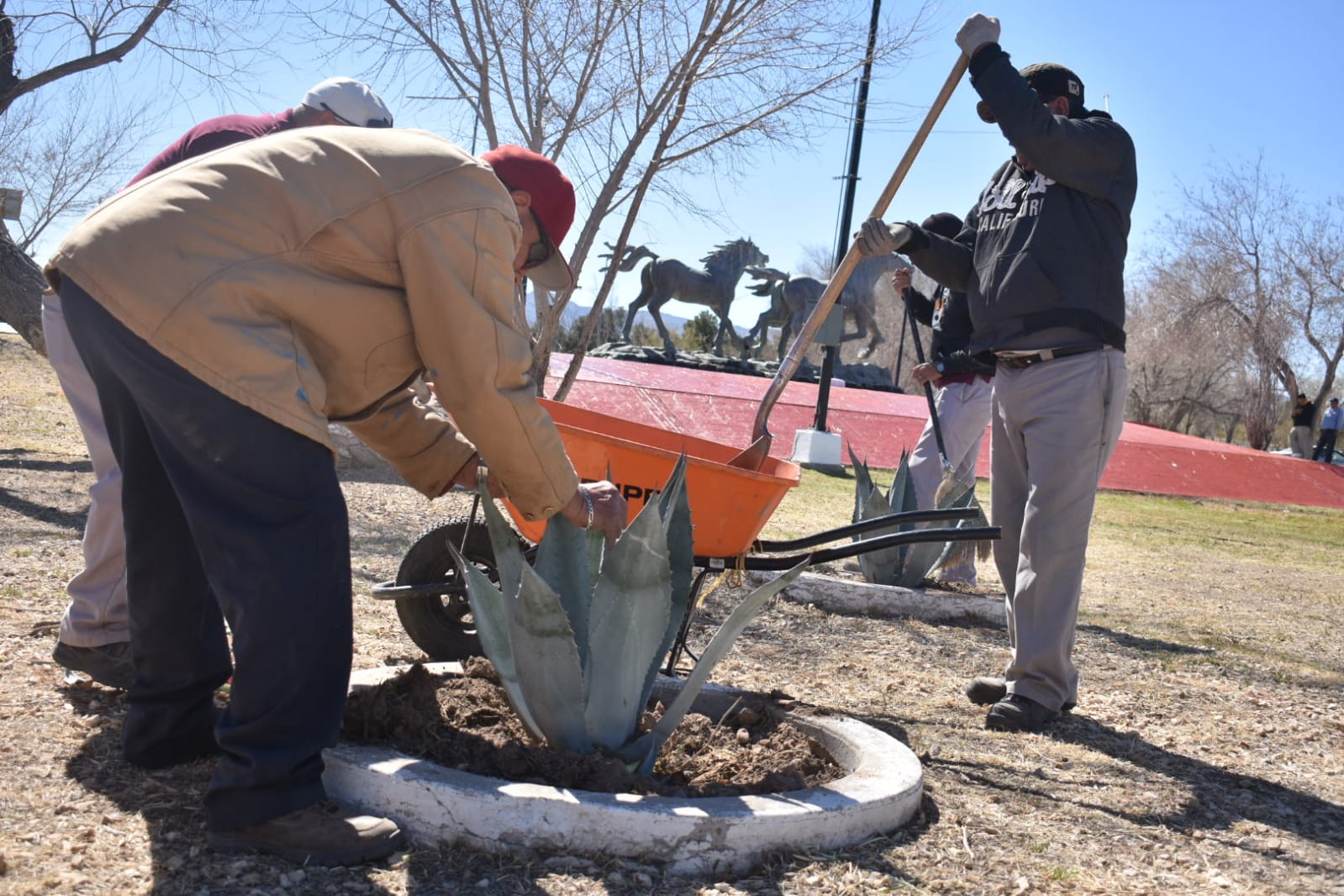 ??Como lo hemos hecho en otros espacios emblemáticos aledaños al parque y en diferentes puntos de la ciudad, estamos hoy atendiendo el espacio de Los Indomables con limpieza general, forestación de 12 magueyes, restauración de las áreas aledañas, pintura en la base del recinto, corte de hierba y retiro de basura?, explicó.