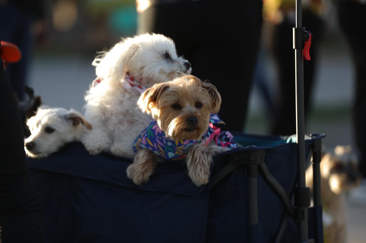 A pesar del viento, las familias disfrutaron de un paseo dominical con sus mascotas, como la señora Marina Arteaga, quien llevó a su pequeña hija en una carreola y juntas pasearon a sus cuatro cachorros.