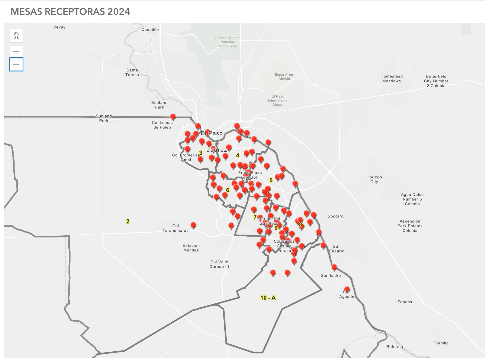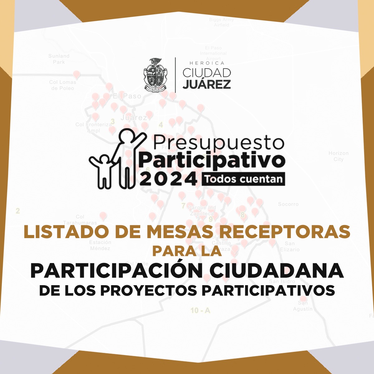 La dependencia municipal creo un mapa interactivo con el fin de que los ciudadanos conozcan a través de la página oficial del Gobierno Municipal o en el enlace https://www.juarez.gob.mx/presupuesto-participativo-ubicacion-mesas/ los puntos especÃficos para ejercer la votación, los cuales están distribuidos en todas las áreas de la ciudad.