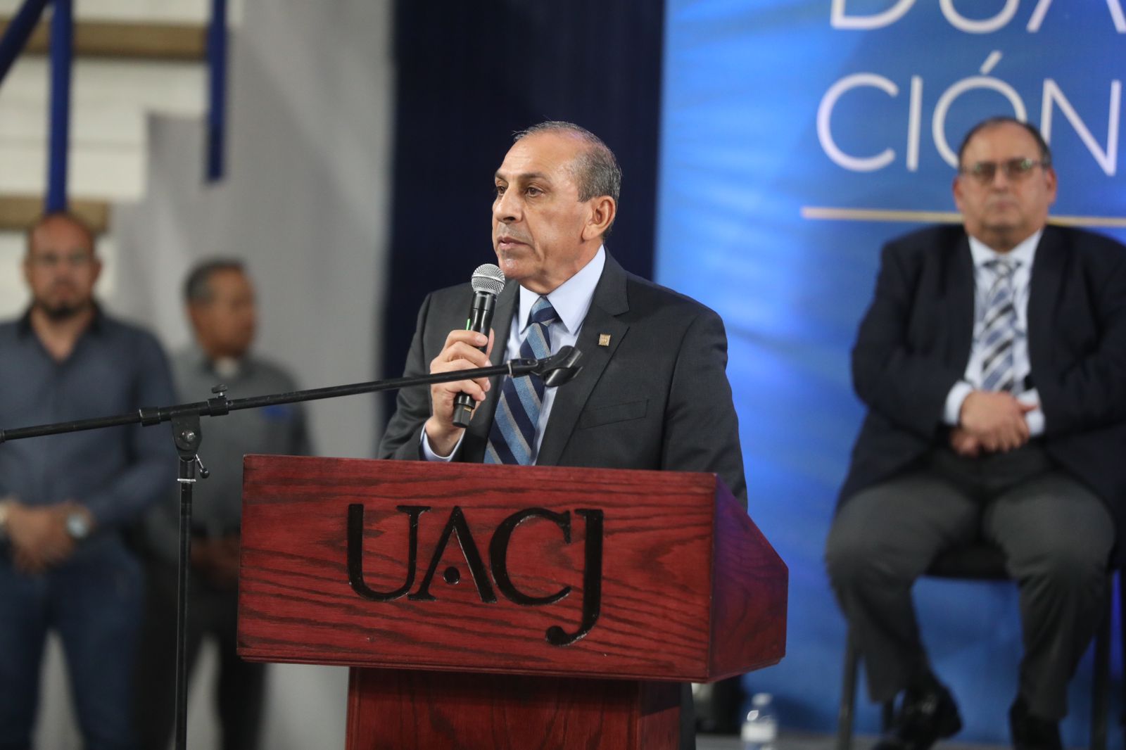 El evento se llevó a cabo en el Gimnasio Universitario, donde el alcalde agradeció al rector por hacer equipo a través de distintos proyectos y trabajar de manera conjunta en beneficio de Juárez.