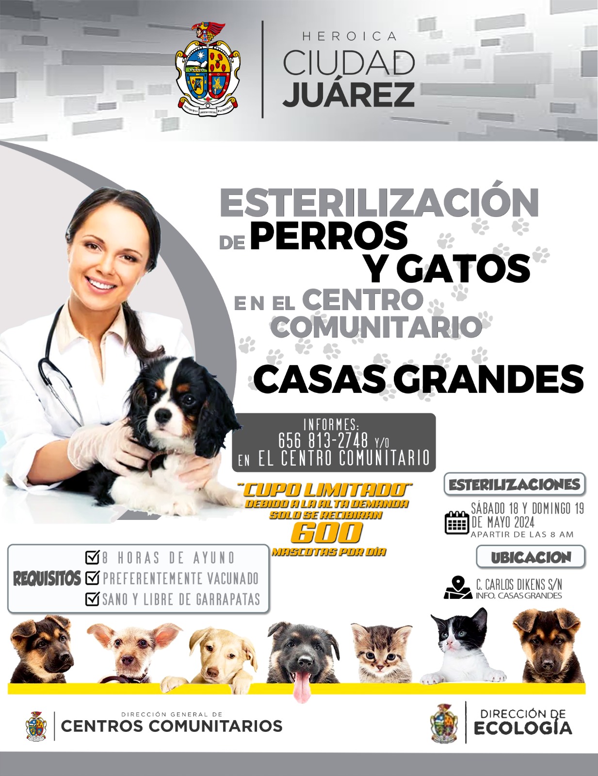 Ante la alta demanda que se ha registrado, se tendrá cupo limitado para 600 mascotas por día, por lo que se exhorta a la población a solicitar mayor información comunicándose al número telefónico 656 813 2748 ó acudir a dicho centro comunitario.