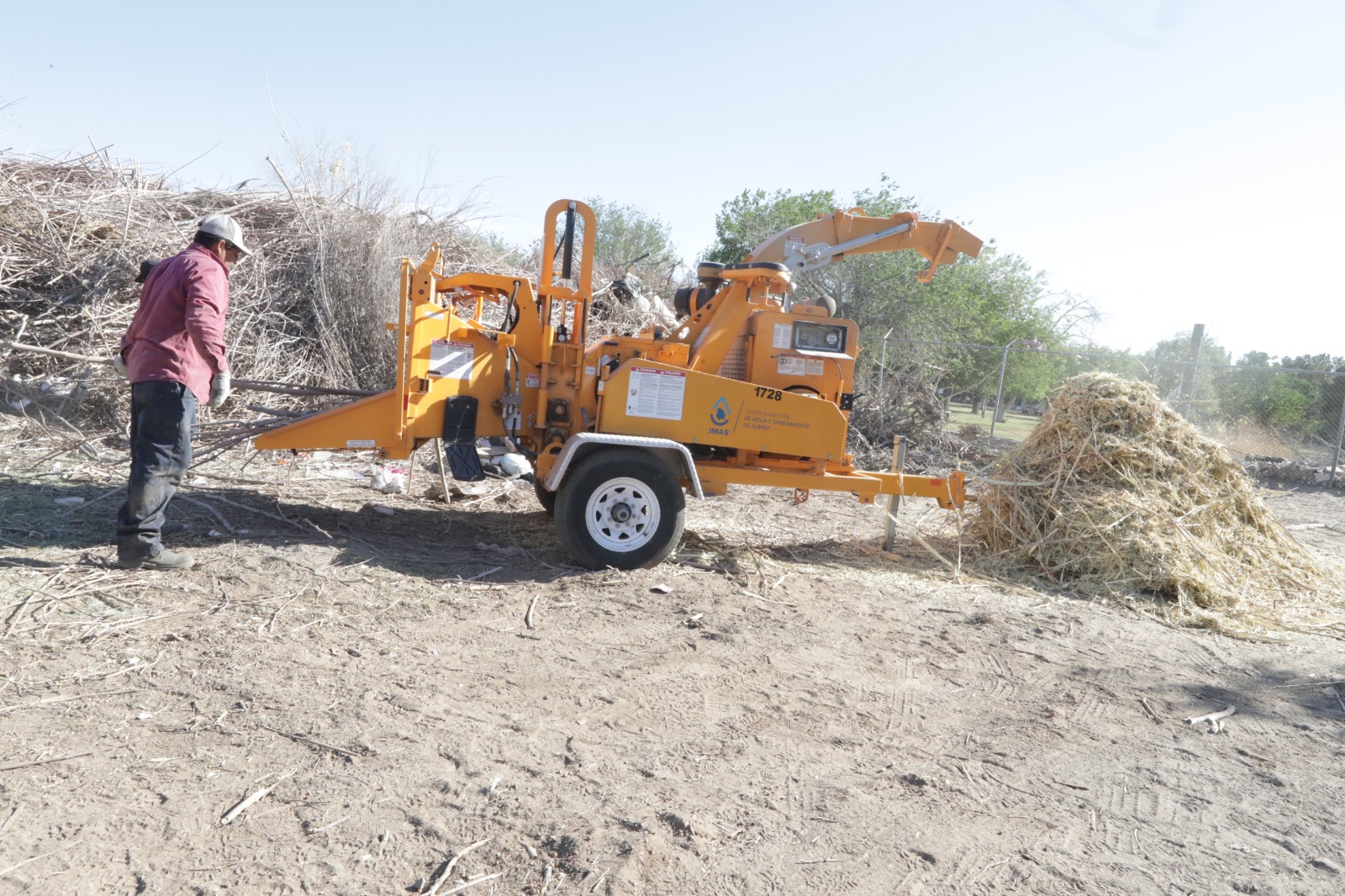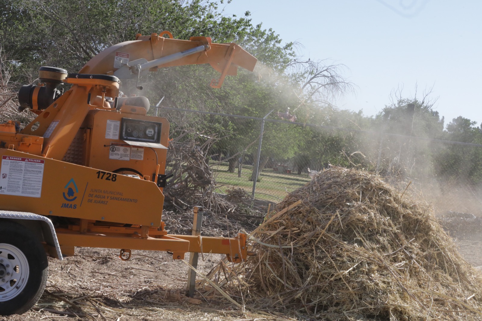 La Dirección de Parques y Jardines realizó la trituración de ramas acopladas en el Vivero II de El Chamizal, con el fin de continuar con el proceso de preparación de materia orgánica para mejorar el suelo de parques públicos y camellones de la ciudad.