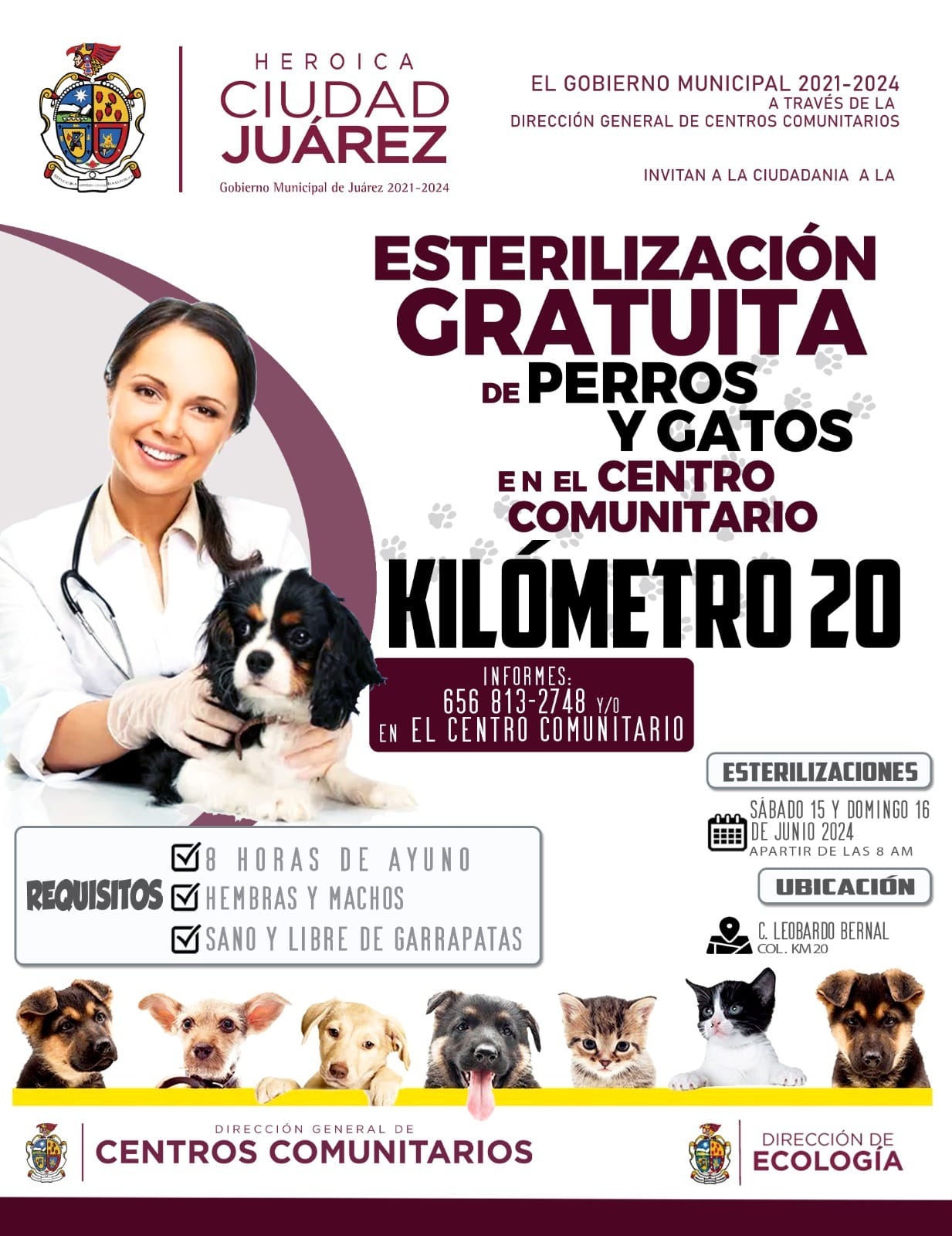 La jornada de esterilización se realizará en coordinación con la Dirección de EcologÃa en las instalaciones del Centro Comunitario del Kilómetro 20, ubicado sobre la calle Leonardo Bernal de la colonia Kilómetro 20.