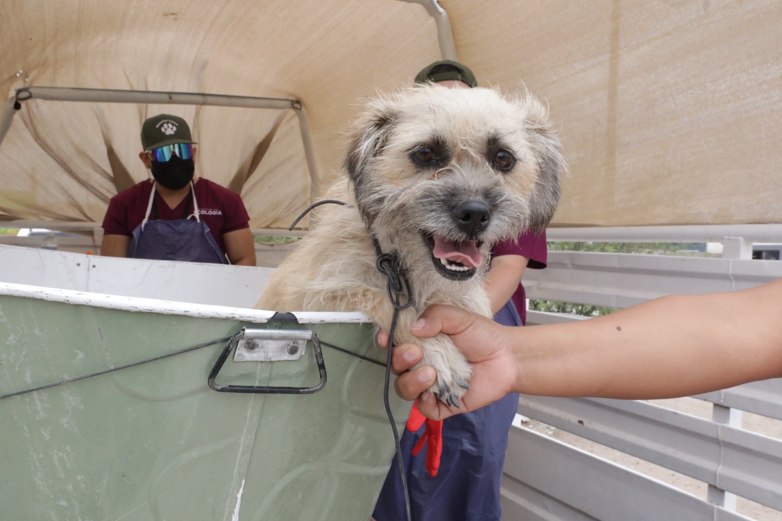 “Llegó solita y me quedé con ella. Ahorita nos avisaron que iban a bañar gratis a los perritos para que se les cayeran las garrapatas y me pidieron que les avisara a más vecinos y nos venimos todos; le agradecemos mucho al Municipio porque esto nos ayuda a nosotros y más a los animalitos”, comentó Rosalva.