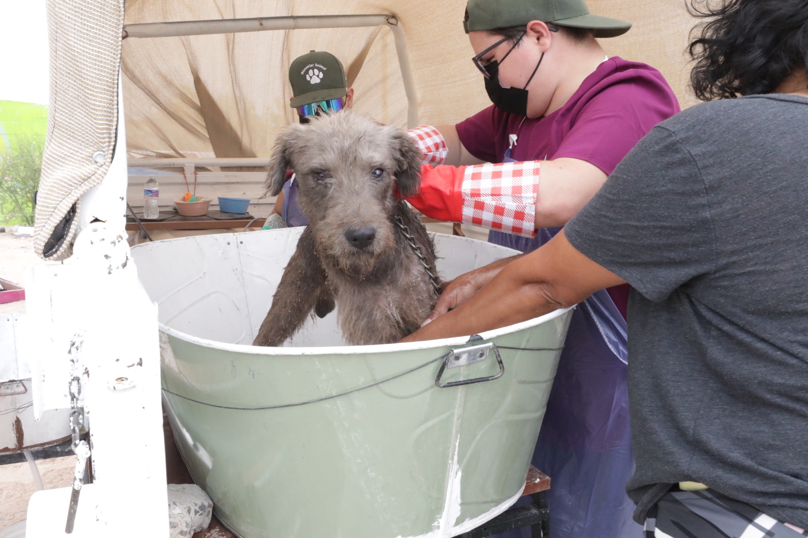 Los baños son rápidos y no requieren secado posterior, por lo que se atendieron tanto a perros domésticos como a los que se encuentran abandonados en las calles.