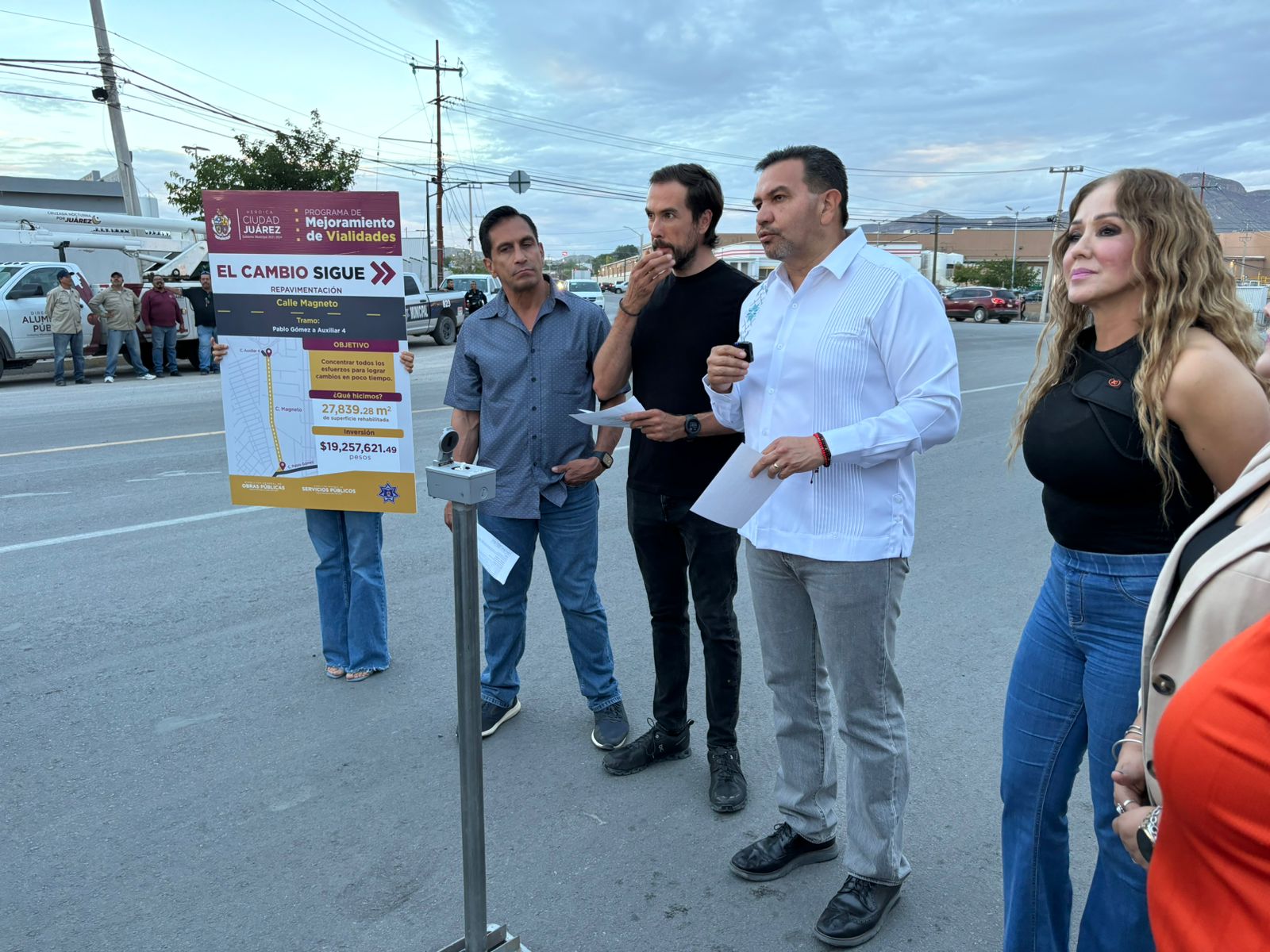 El Presidente Municipal, Cruz Pérez Cuéllar, asistió esta noche al Parque Industrial Gema, para hacer la entrega de trabajos de pavimentación y el encendido de luminarias de la calle Magneto, donadas por la empresa Cooper Lighting Solution.