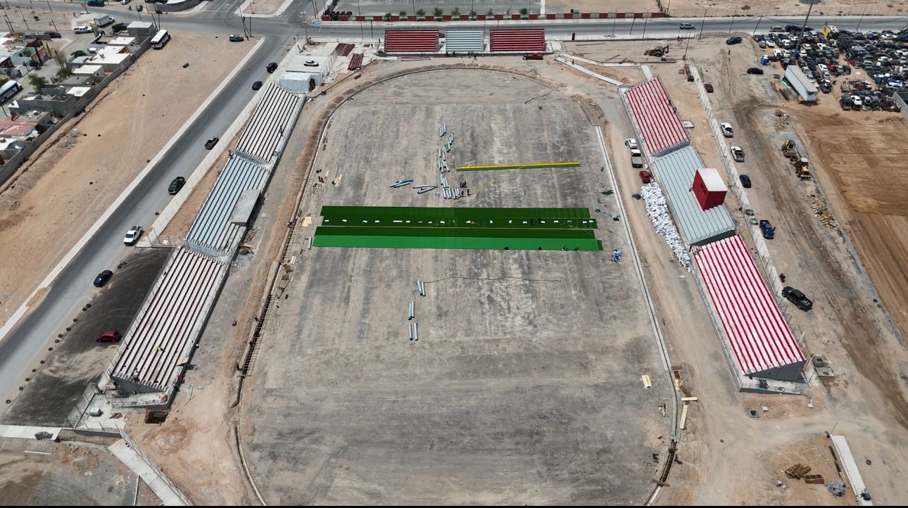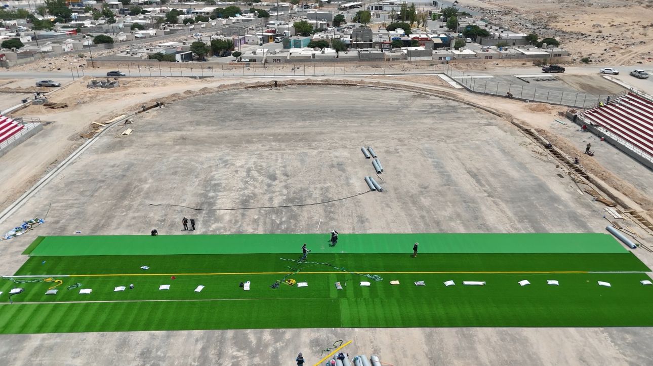 Daniel González GarcÃa, titular de la dependencia, comentó que previamente se estuvo trabajando en terracerÃas, asà como en la colocación de capa de subbase y el material base, además del riego de impregnación para comenzar con la colocación del pasto en la cancha principal.