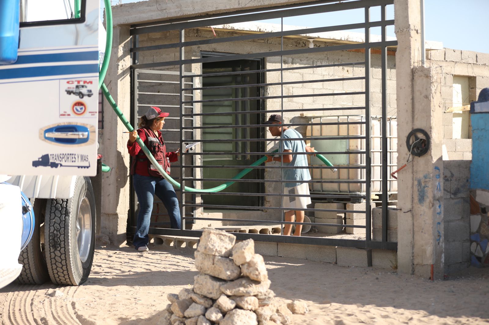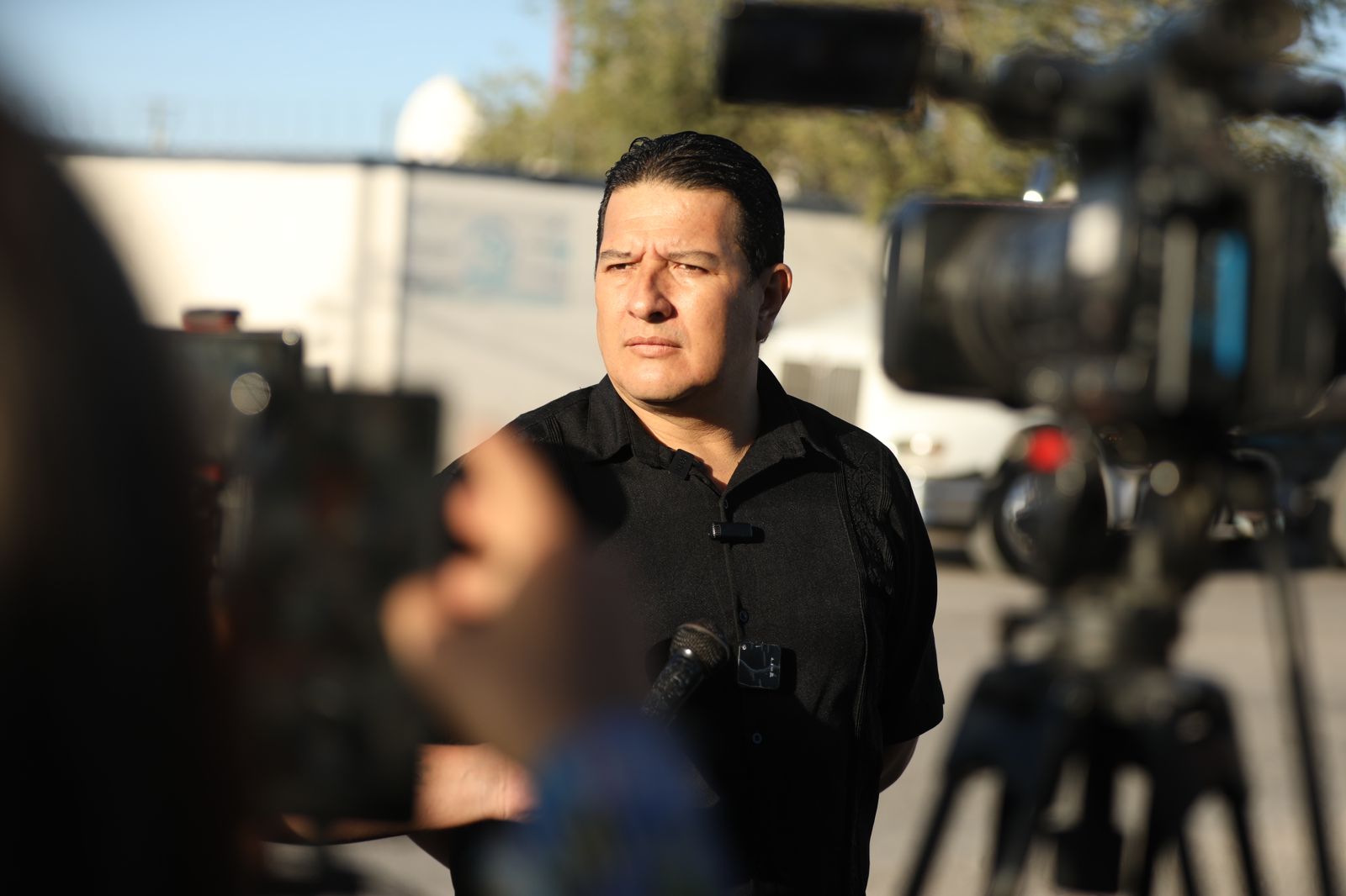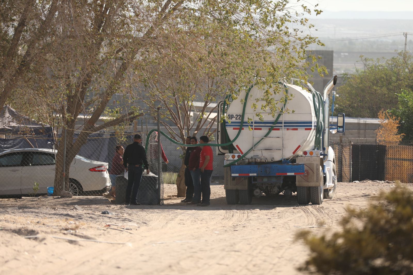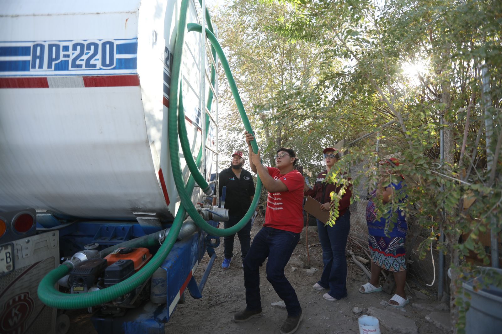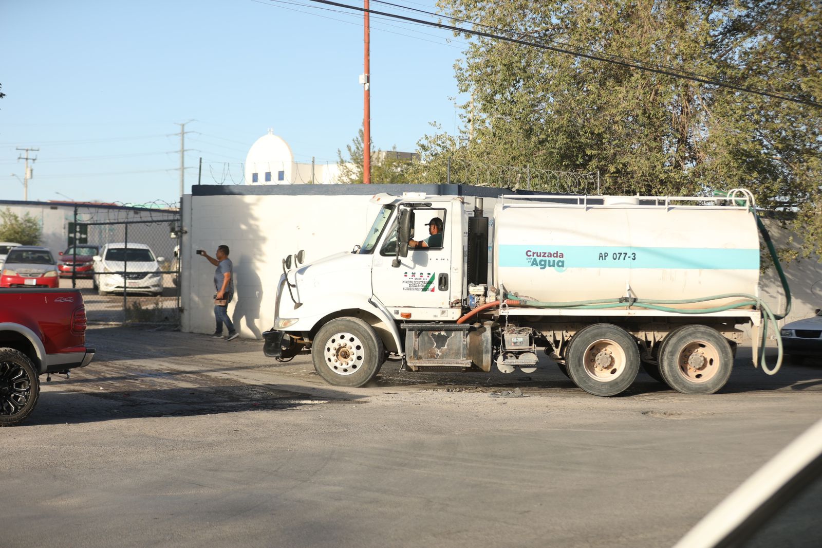 Esta mañana el director general de Desarrollo Social, Hugo Vallejo Quintana, atendió a algunos medios de comunicación que se dieron cita en la garza ubicada en la calle José Reyes Estrada y avenida De las Torres, sitio en donde la dependencia abastece los camiones cisterna que utiliza para repartir agua a la ciudadanía.