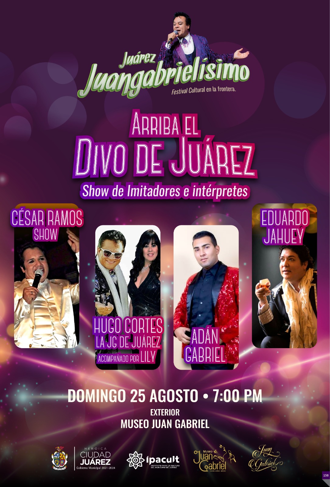 El Gobierno Municipal, a través del Instituto para la Cultura del Municipio de Juárez (IPACULT), junto con la Casa Juan Gabriel y Museo Juan Gabriel, extienden una cordial invitación a la ciudadanía para disfrutar del evento “Arriba el Divo de Juárez”.