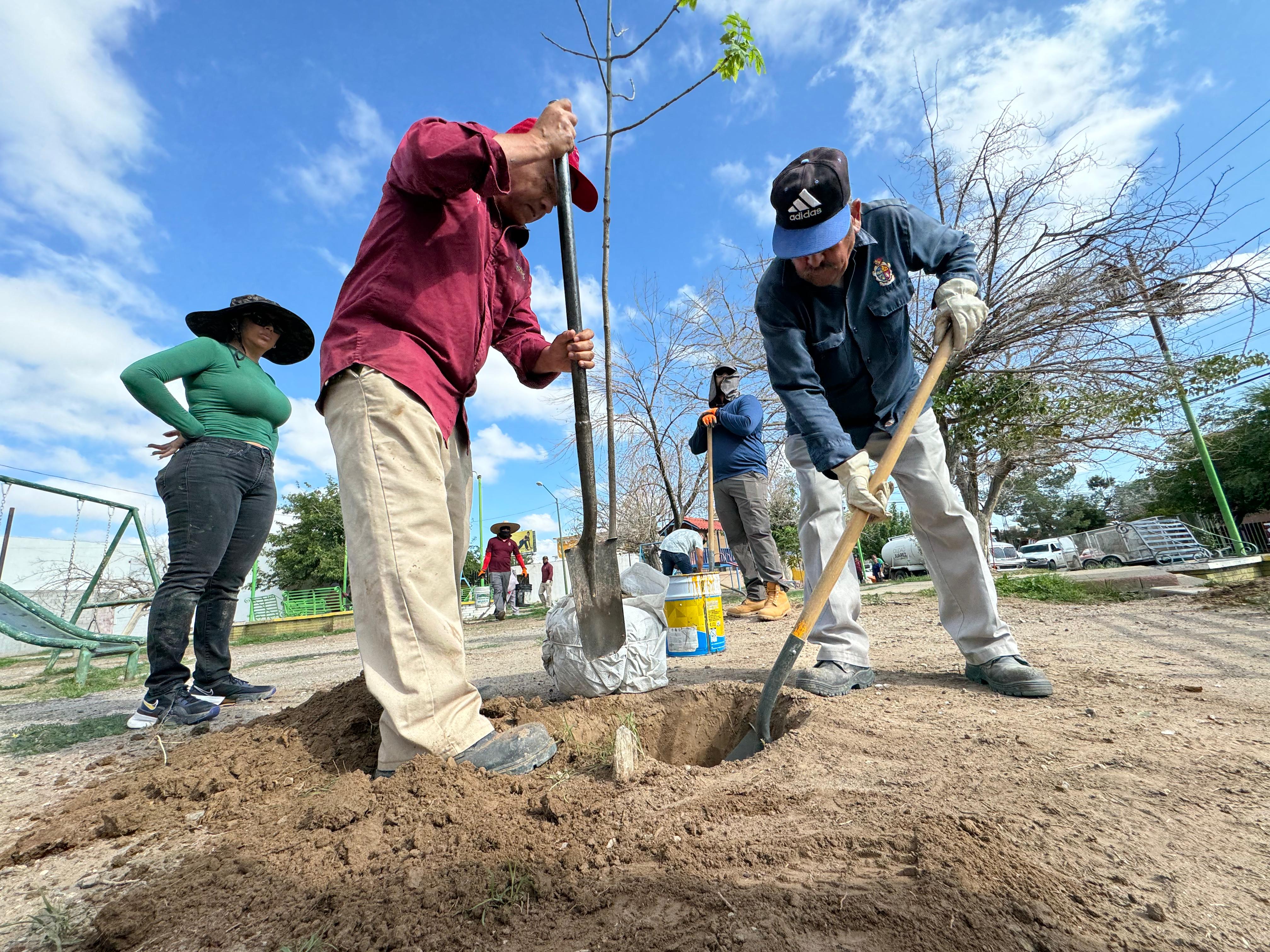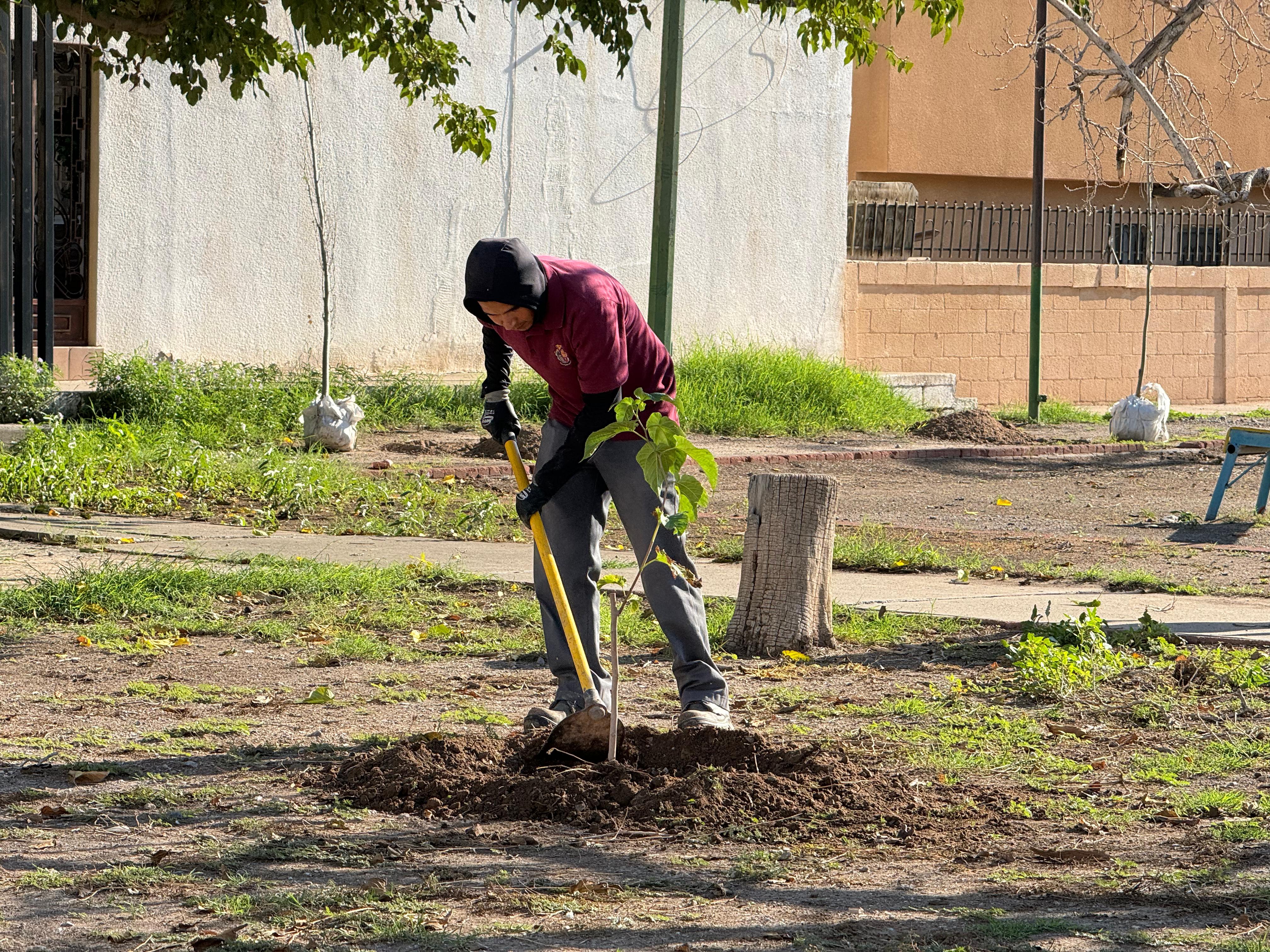 Con el objetivo de tener una mayor cantidad de vegetación en la ciudad, la Dirección de Parques y Jardines reforestó el parque ubicado en la calle Rancho Los Horcones, en el fraccionamiento Pradera Dorada.