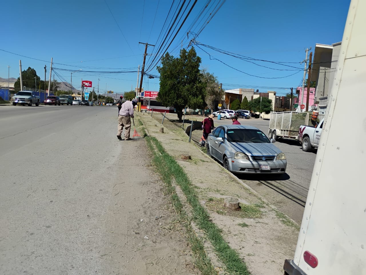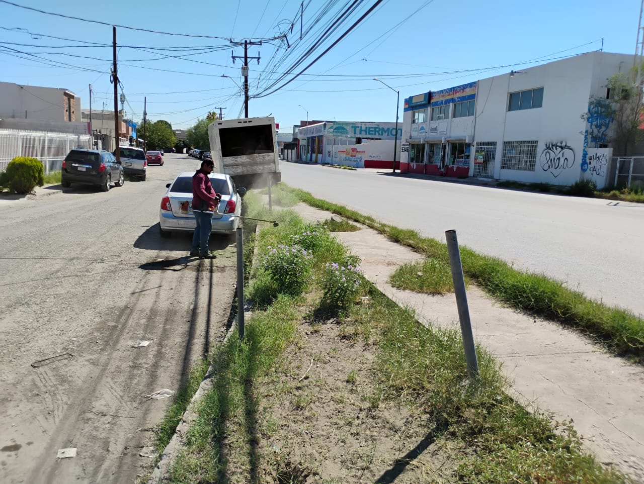 Atiende Parques y Jardines camellón lateral de la calle Simona Barba