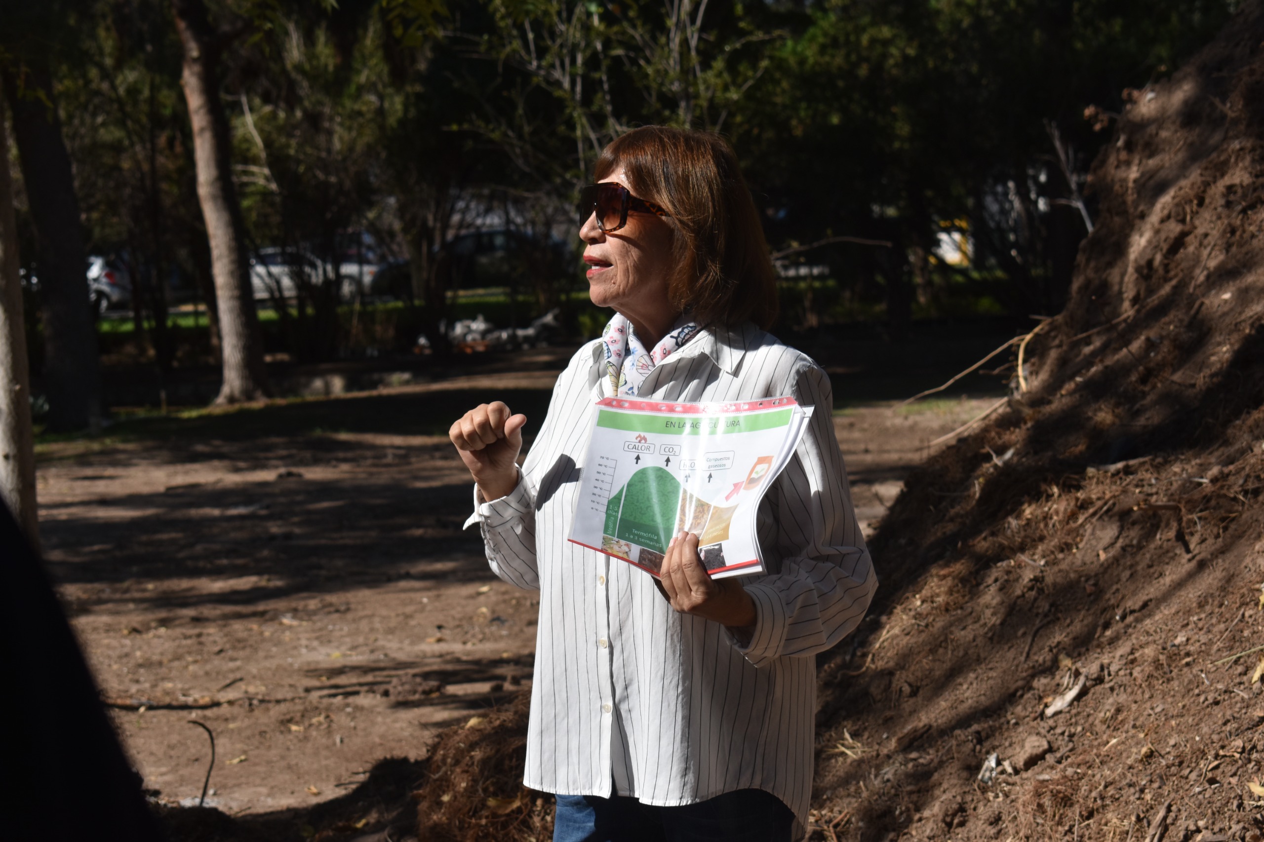 Edith Santillánez Martínez, maestra de la institución educativa, comentó que los alumnos cursan como parte de sus asignaturas el tema del cambio climático y con este recorrido aprenderán cómo hacer una composta para los árboles.