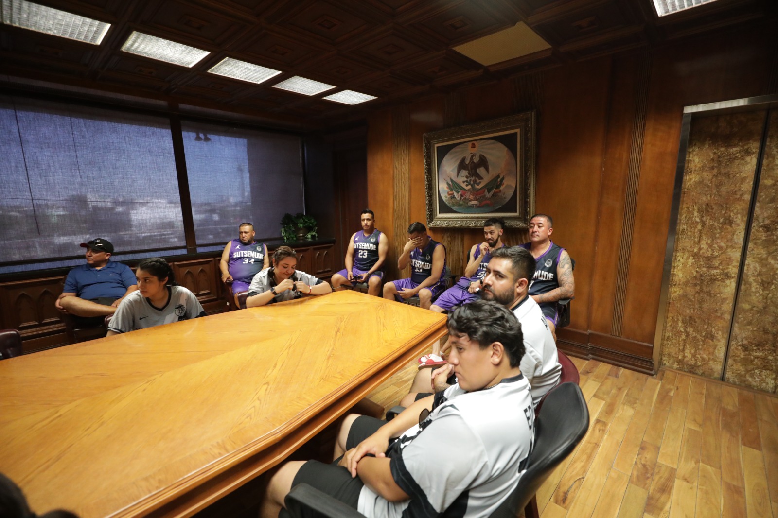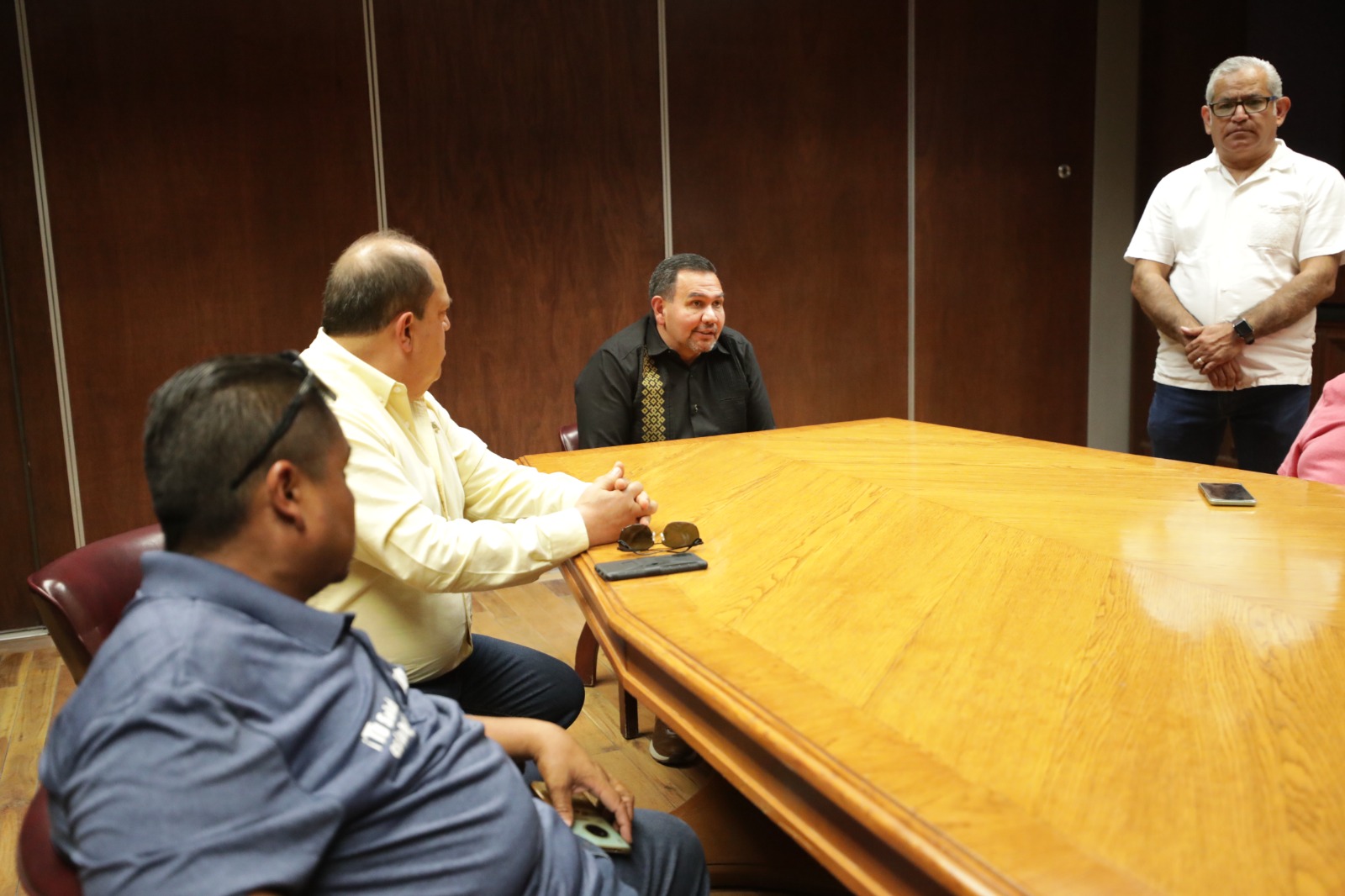 Aprovechando su estancia en esta ciudad, hicieron una visita de cortesía al alcalde, en la cual estuvieron acompañados de los dirigentes del SUTM, entre ellos el secretario general, Carlos Villegas y Arturo Silva Doray.