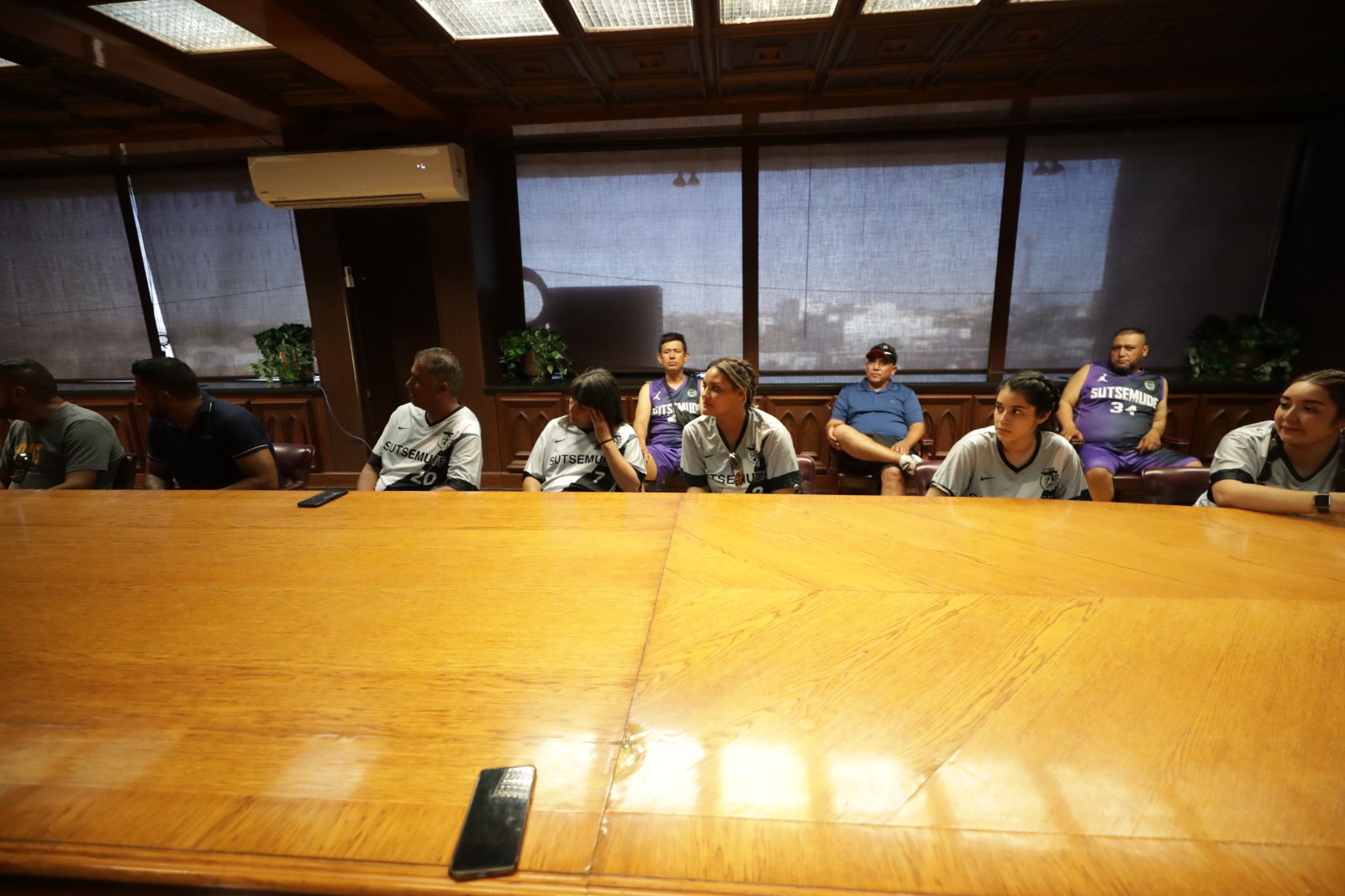 Trabajadores sindicalizados del municipio de Delicias que participan en un intercambio deportivo con empleados municipales de Ciudad Juárez, visitaron esta tarde al Presidente Municipal, Cruz Pérez Cuéllar.