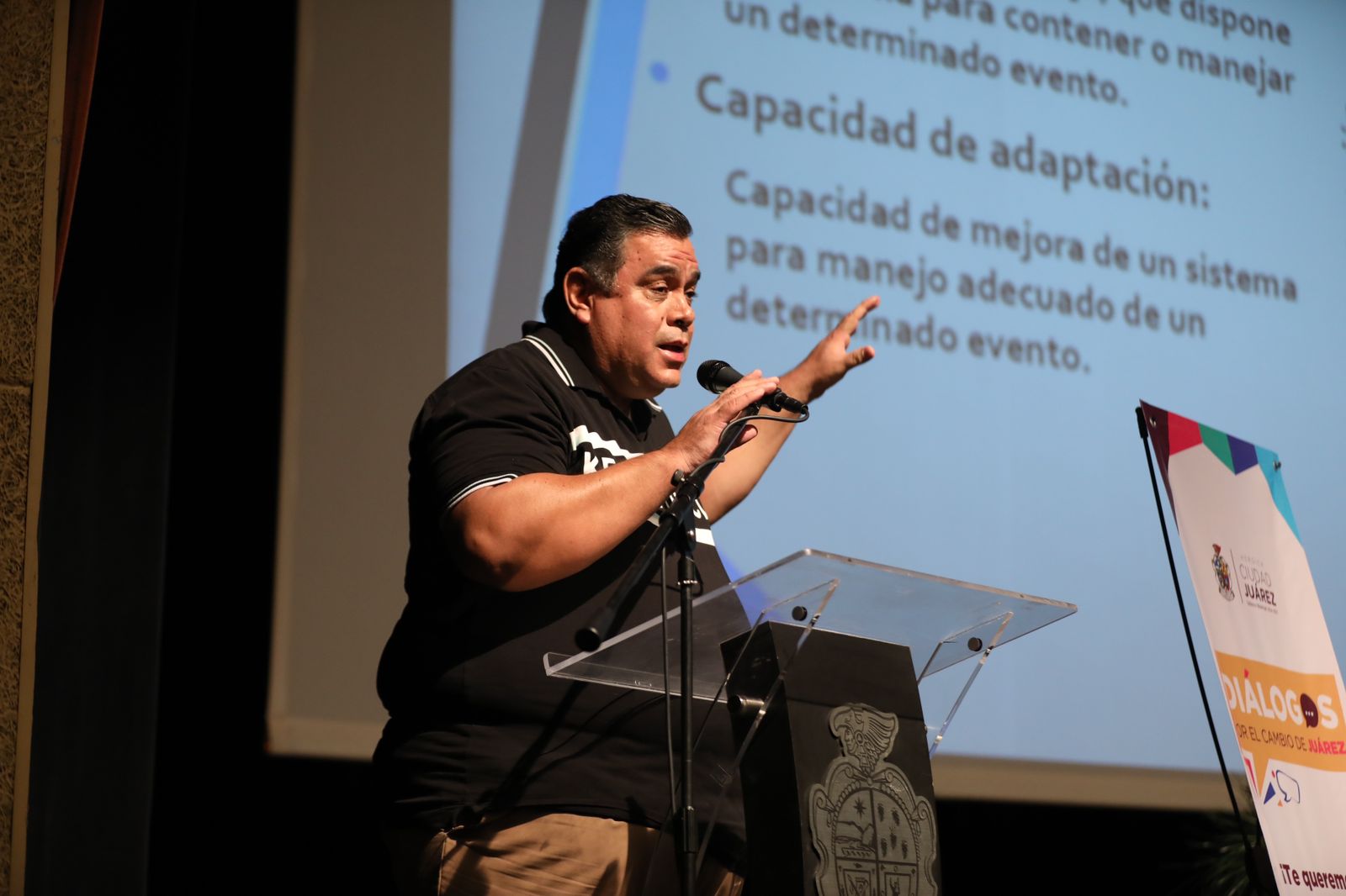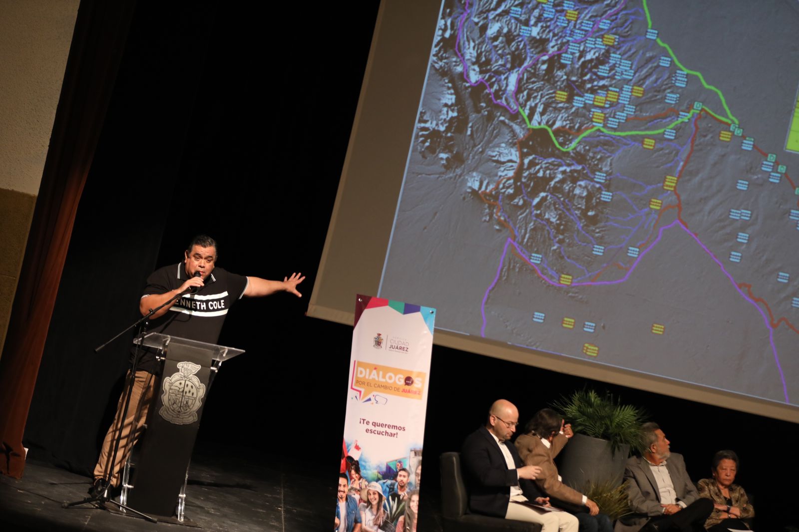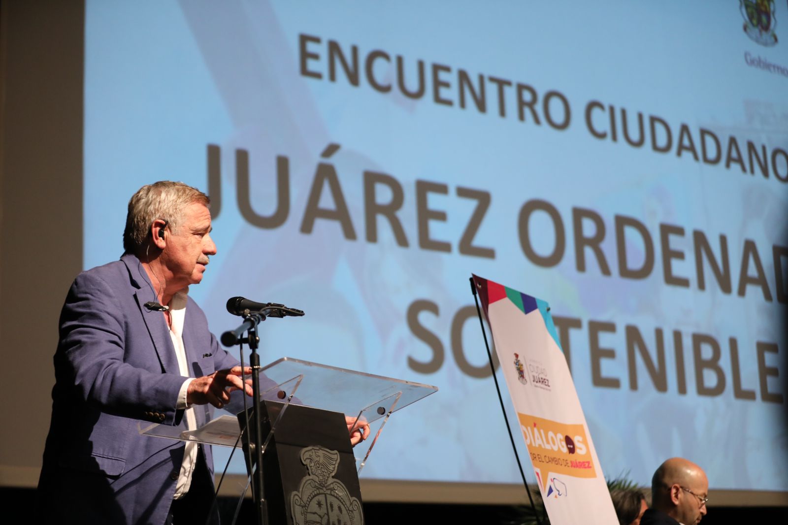 Esta tarde se llevó a cabo el cuarto encuentro ciudadano de los "Diálogos por el Cambio de Juárez", cuyo tema principal fue "Juárez Ordenado y Sostenible". Los expositores principales fueron el Dr. Óscar Sotero Dena Ornelas, Jefe del Departamento de Investigación en Geociencias del Instituto de Ingeniería y Tecnología de la UACJ, y el Dr. Genaro Javier Delgado Campos, Director del Programa Universitario de Estudios de la Ciudad (PUEC) de la UNAM.