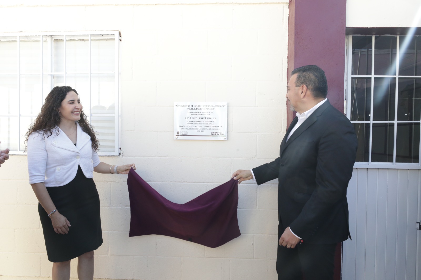 El Presidente Municipal, Cruz Pérez Cuéllar, entregó obras de rehabilitación en el edificio de Supervisión de Secundarias Técnicas, localizado en la colonia Melchor Ocampo.