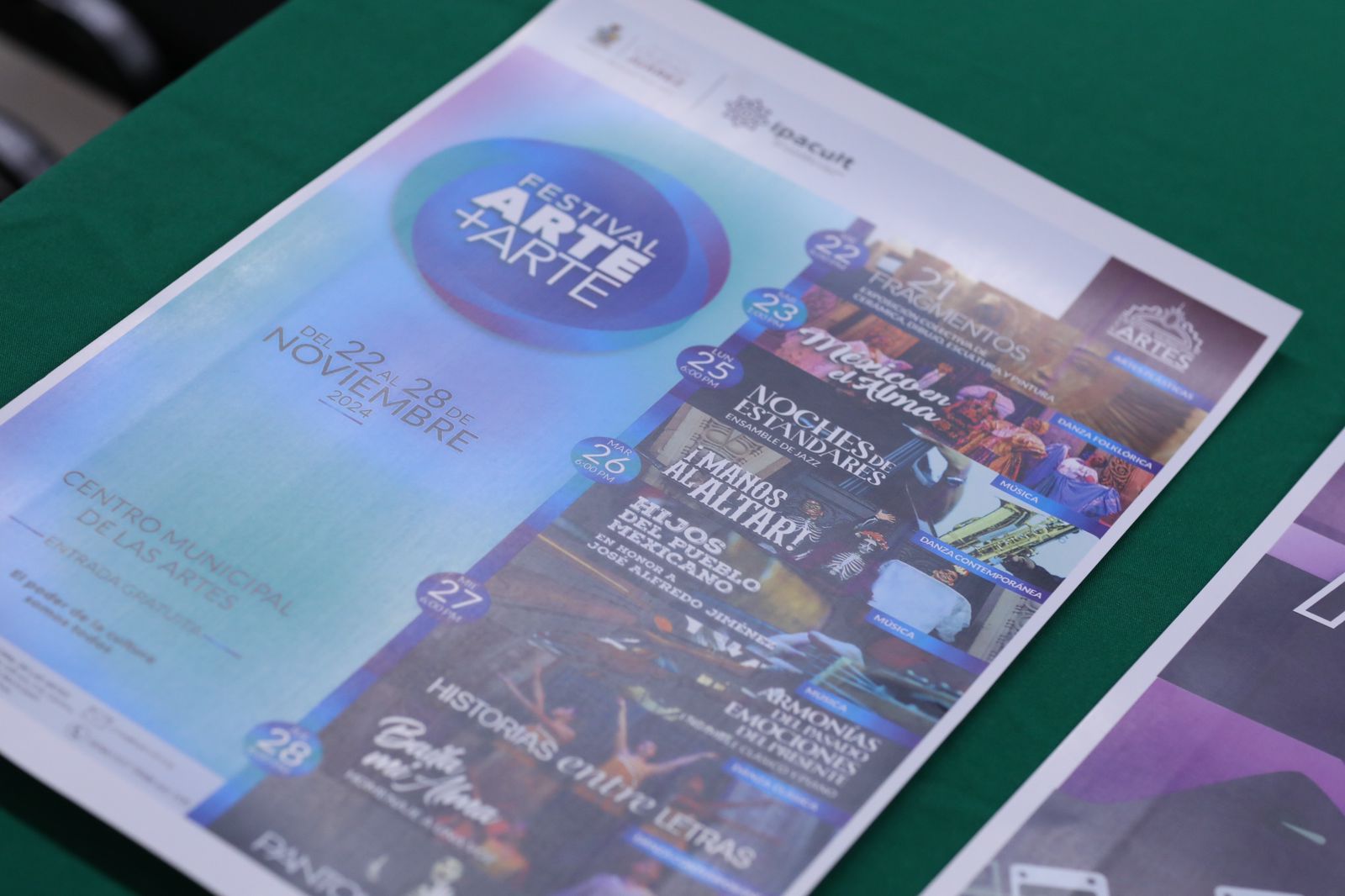 El Instituto para la Cultura del Municipio de Juárez (IPACULT) invita a la ciudadanía al Festival Arte+Arte, que se llevará a cabo del 22 al 28 de noviembre, evento que celebra el cierre de cursos de las diversas disciplinas impartidas en el Centro Municipal de las Artes (CMA), y contará con presentaciones artísticas de teatro, danza, música y artes plásticas, realizadas por estudiantes de todas las carreras del instituto.