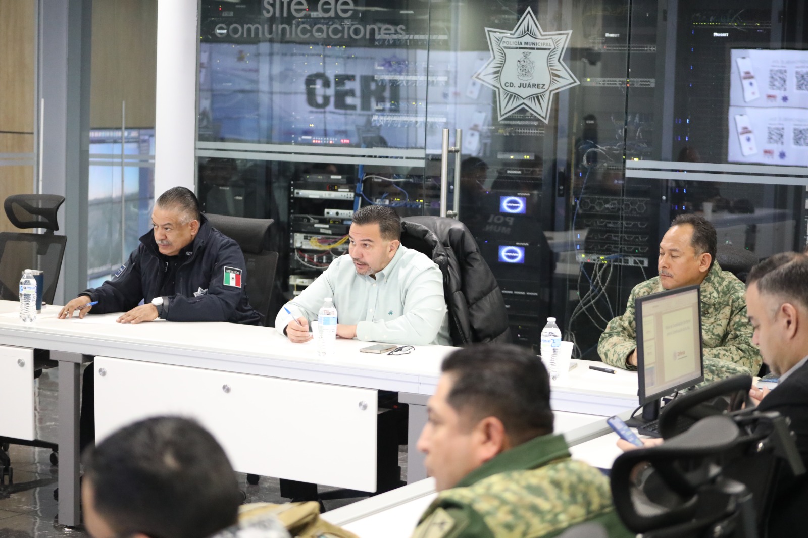 Esta mañana, el presidente municipal de Ciudad Juárez, Cruz Pérez Cuéllar, encabezó la reunión semanal de seguridad en el Centro de Respuesta Inmediata, donde se evaluaron avances y se coordinaron estrategias entre las distintas corporaciones encargadas de garantizar la seguridad en la ciudad.