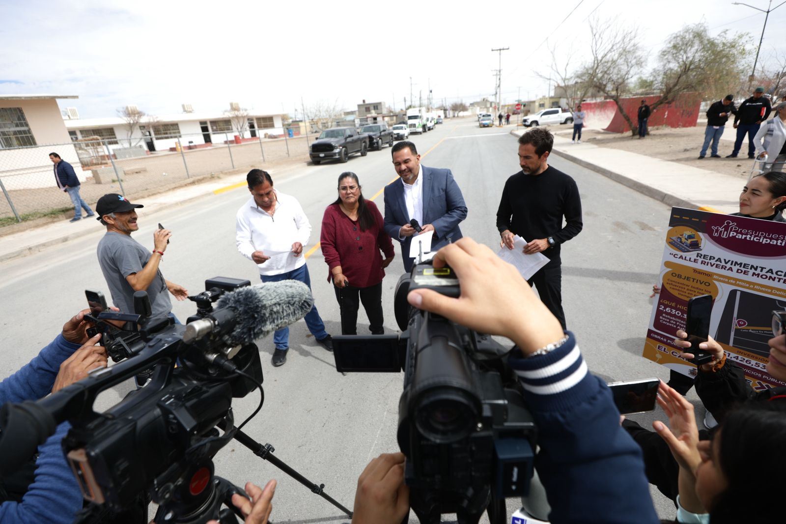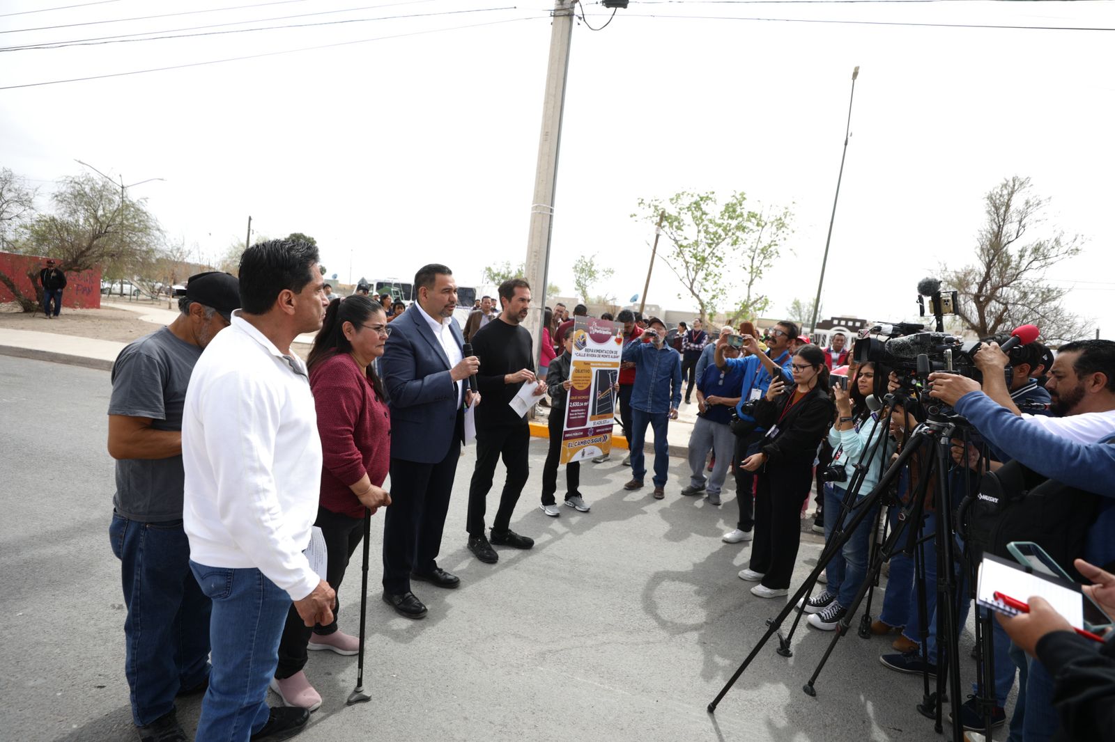 En la entrega de la calle se contó con la presencia del director de Obras Públicas, Daniel González García y vecinos de Riberas del Bravo, etapa 8.