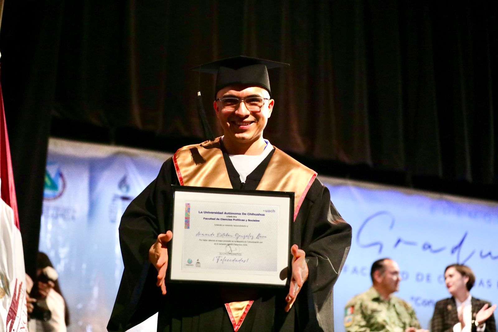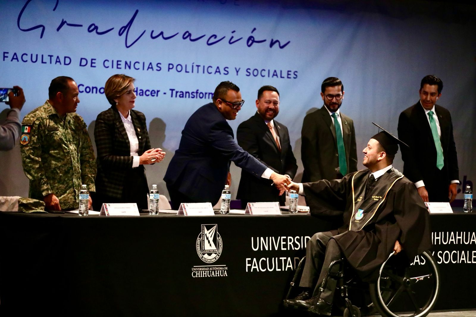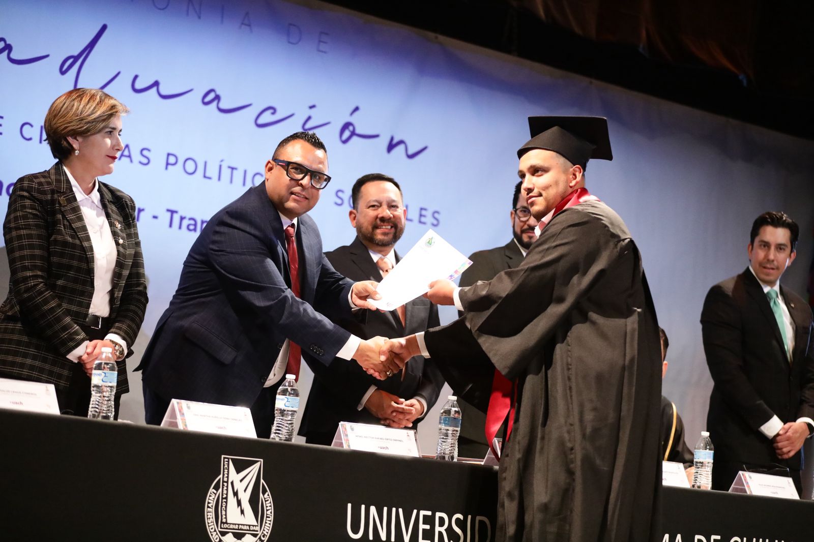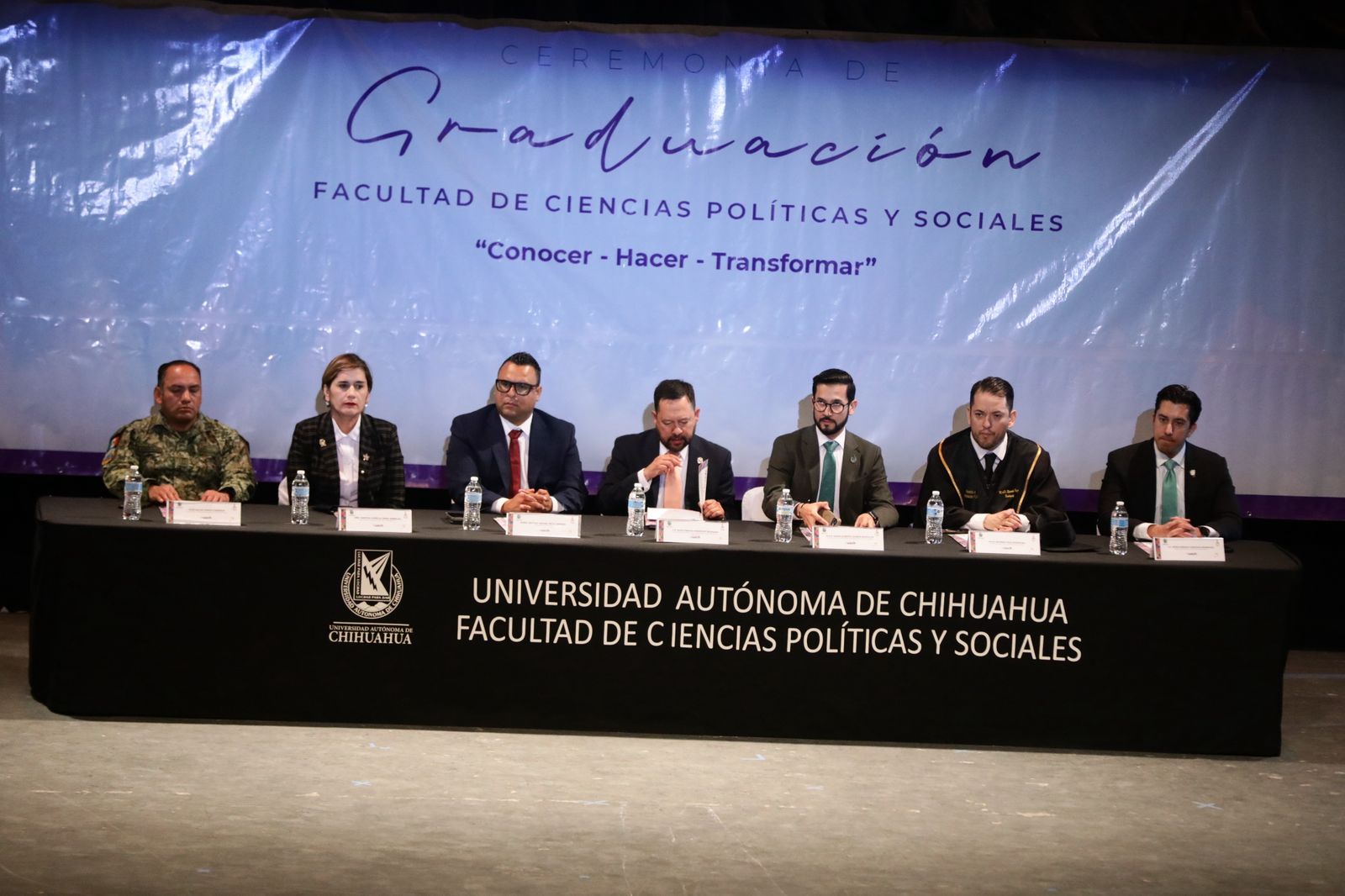 El director de Educación Municipal, Guillermo Enrique Alvídrez, acudió en representación del Presidente Municipal, Héctor Rafael Ortiz Orpinel, a la ceremonia de graduación de la Facultad de Ciencias Políticas y Sociales de la Universidad Autónoma de Chihuahua (UACH), Campus Juárez.