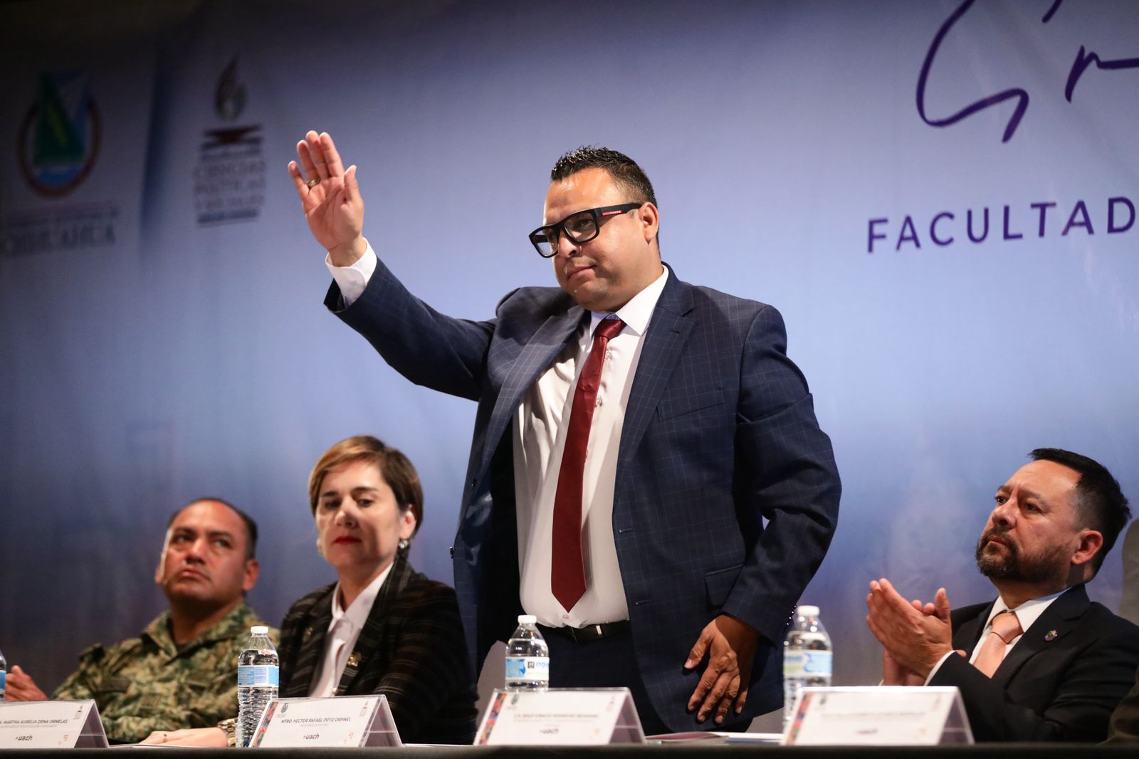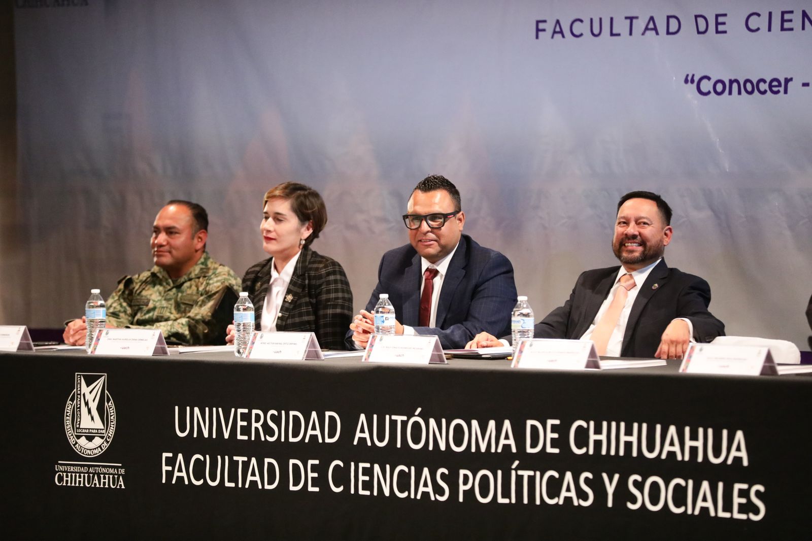 Durante el evento estuvieron el Capitán Segundo de Caballería Salomón González Pineda, de la Guarnición Militar; Jorge Enrique González, del poder Judicial del Estado de Chihuahua y Martha Aurelia Dena Ornelas, secretaria de Investigación y Postgrado de la Facultad de Ciencias Políticas y Sociales.