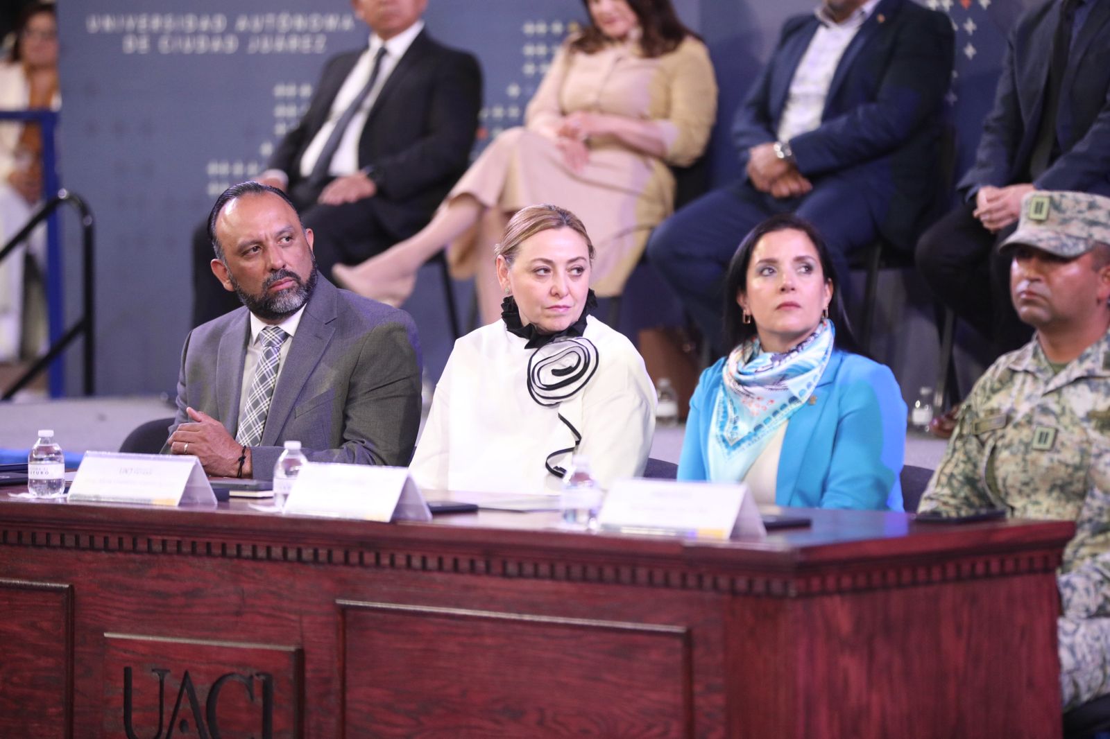 En la ceremonia de graduación estuvieron la directora del Instituto de Ciencias Biomédicas, Tania Dolores Hernández García; el director del Instituto de Ingeniería y Tecnología, Erwin Adán Martínez Gómez; la secretaria Académica, María Guadalupe Gaytán y el secretario general, Salvador David Nava.