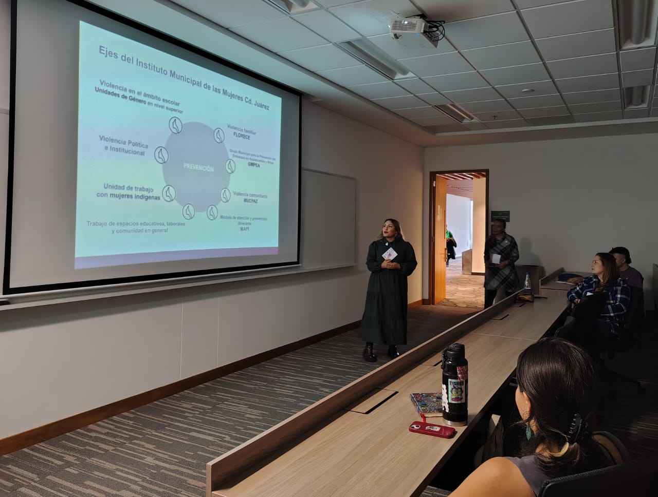 En este sentido, Elvira Urrutia Castro, directora general del IMM, y el equipo de Prevención llevaron a cabo la presentación del proyecto “Mujeres Constructoras de Paz (MUCPAZ): modelo participativo para la construcción de paz y la prevención de la violencia de género en Ciudad Juárez”.