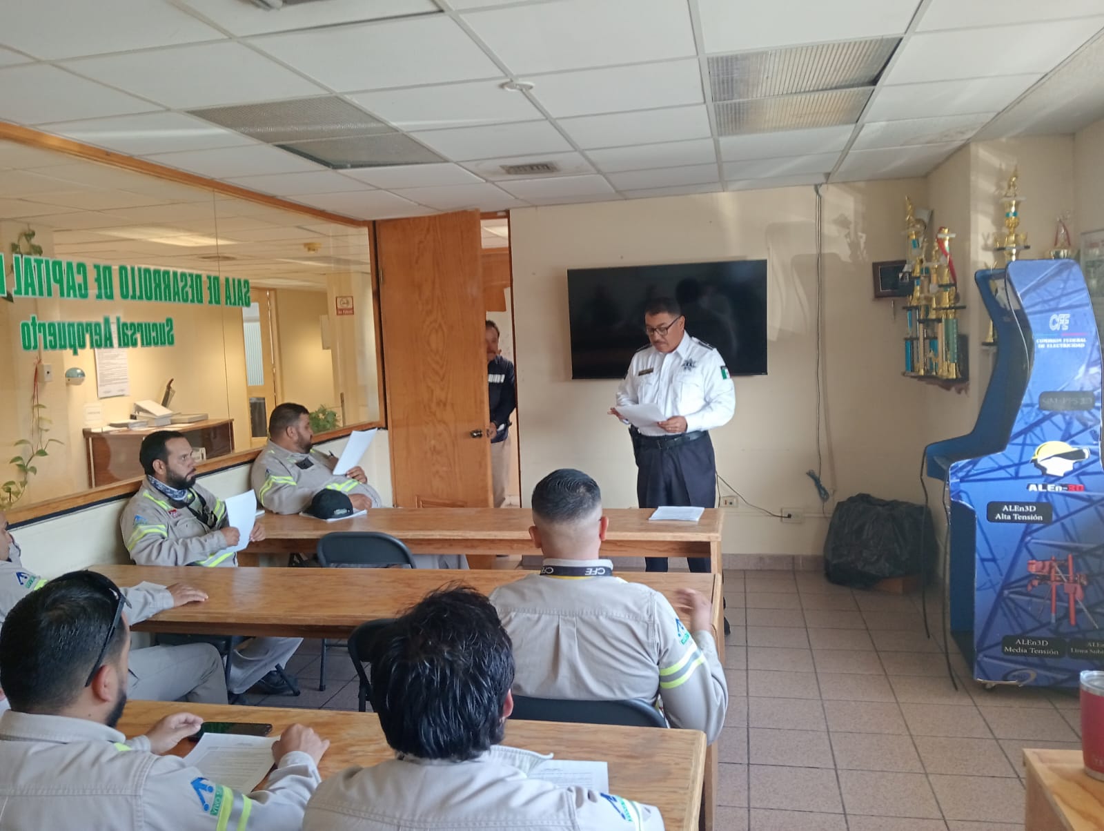 Policías viales adscritos al área de Educación Vial de la Coordinación General de Seguridad Vial, impartieron un curso sobre el Reglamento de Vialidad y Tránsito a 15 trabajadores de la estación Aeropuerto de la Comisión Federal de Electricidad (CFE).