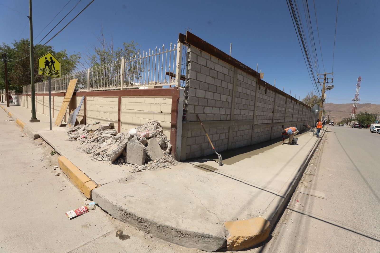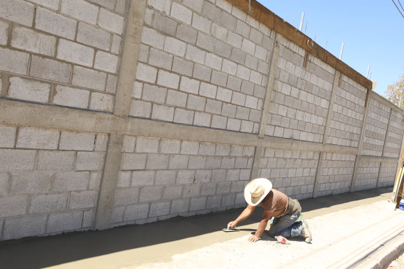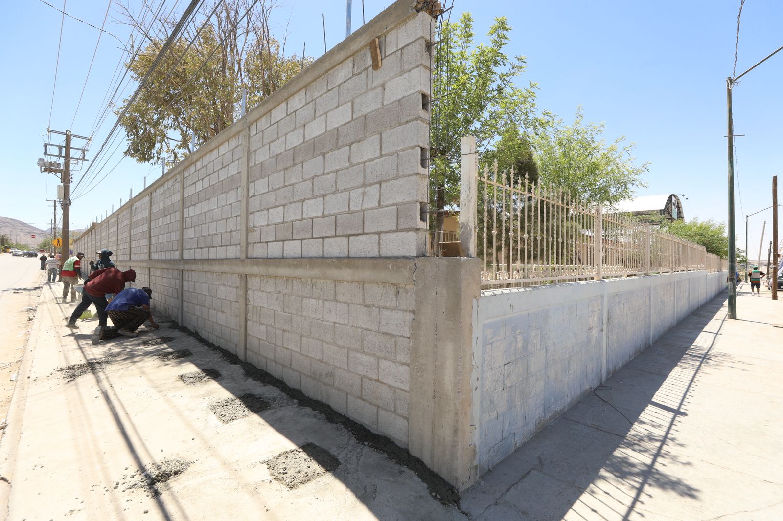 La Dirección General de Obras Públicas trabaja en la rehabilitación de una barda perimetral de la Escuela Primaria Insurgentes, ubicada entre la avenida 16 de Septiembre y la calle Miguel Hidalgo en la colonia Insurgentes.